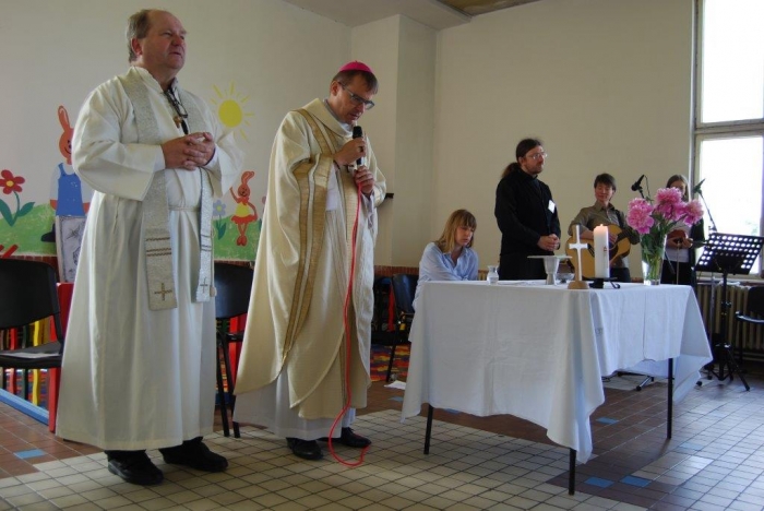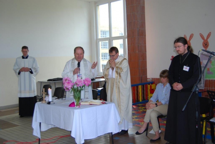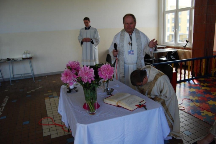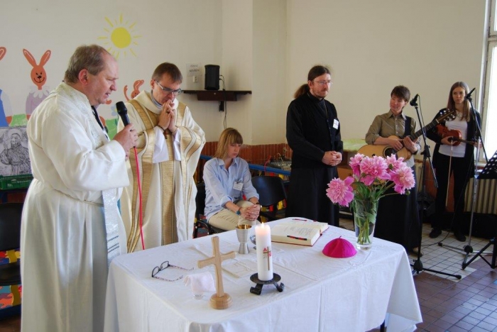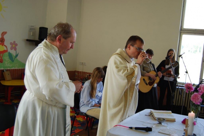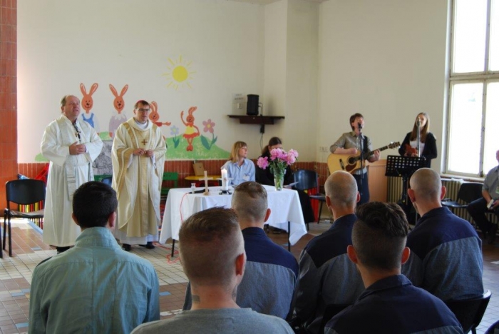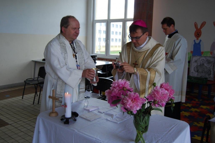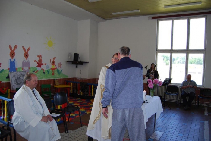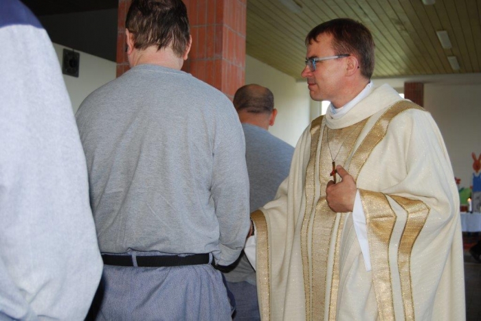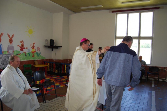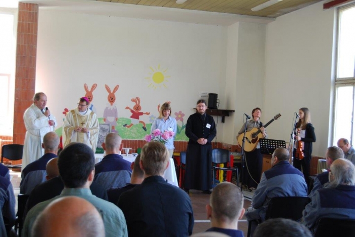 Plzeňský biskup Mons. ThLic. Tomáš Holub navštívil včera dopoledne věznici v Kynšperku nad Ohří a spolu s ním přišli také pravidelně docházející duchovní z Českobratrské církve evangelické Juliana R. Hamari, z Pravoslavné církve otec Metoděj V. Kout a také členové zasvěceného společenství Koinonia z Plzně, kteří k setkání přispěli nádhernou hudbou. Při rozhovoru s ředitelem věznice Martinem Klapperem, v němž došlo na sdílení k tématu reintegrace vězněných osob a možností, v nichž může věznice na této snaze pracovat, byla kvitována jako dobrá a žádoucí také duchovenská služba. Po úvodním setkání s ředitelem věznice si hosté prohlédli krátce oddíl pro odsouzené věřící a se zájmem o duchovní hodnoty, pohovořili s některými odsouzenými, kteří předali biskupovi dar v podobě obrazu Krista namalovaného uhlem na zbytku plátna a vypnutého na papírovém rámu, tedy v možnostech, jaké vězni měli. Sedmdesát dva odsouzených se podílelo na bohoslužbě pod vedením biskupa Holuba. Ten ve svém kázání mj. na téma Geneze 11. kapitola, kde je popisován vzestup a pád člověka, který si zakládá jen na svém sobeckém umu a pýše ve vyprávění o stavbě Babylónské věže, nabádal odsouzené, jak se rozhodnout nebýt ve zlu a stavět na dobrém základu svůj další život. „Nestavte si Babylónské věže…“, pověděl také. Čas trestu je pro odsouzené velkou příležitostí ke změně nejen životního pohledu, ale také života. Lze aspoň trochu důvěřovat, že tato setkávání a přístupy budou pomocí nejen odsouzeným, ale také pro společnost, která je tak lépe ochráněna. Věznice se nechala inspirovat argentinskou trestnicí se 2500 vězni a v červnu 2010 zahájila tehdy zkušební provoz oddílu, kde jsou společně ubytováni odsouzení věřící a odsouzení se zájmem o duchovní hodnoty společně s odsouzenými s výrazně nižší tělesnou hmotností, zjevně nízkými rozumovými schopnostmi, popř. jsou vytipováni jako možné oběti násilného jednání ze strany jiných odsouzených. Jedná se tedy o vězně, kteří jsou, řekněme, nějak oslabeni. Oddíl je podobný jako jiné oddíly, nemá specifika, která by vyžadovala zvláštní režim. Byl zřízen očekávaje, že duchovní působení na tuto skupinu vězňů bude mít vliv na chování a vztah k hodnotám. Lze říci, že tento krok se ukázal jako velmi dobrý. Jedním z ukazatelů je právě skutečnost, že odsouzení se chovají k sobě i k majetku mnohem ohleduplněji. Věznice Kynšperk nad Ohří je věznicí s dozorem a aktuálně v ní vykonává trest více než tisíc odsouzených mužů. Dvakrát v týdnu dochází do věznice kaplan Jaroslav Šašek, který je ve svém hlavním zaměstnání farářem římskokatolické církve v Plané u Mariánských Lázní a okolí. Zajišťuje především individuální pastorační rozhovory s odsouzenými, bohoslužby a individuální nebo skupinovou výuku bible a dalších příbuzných teologických disciplín. Připravuje kulturní a společenské akce s duchovním obsahem, koordinuje působení církví a náboženských společností a podílí se na vytváření podmínek pro začlenění odsouzených do občanského života po propuštění.