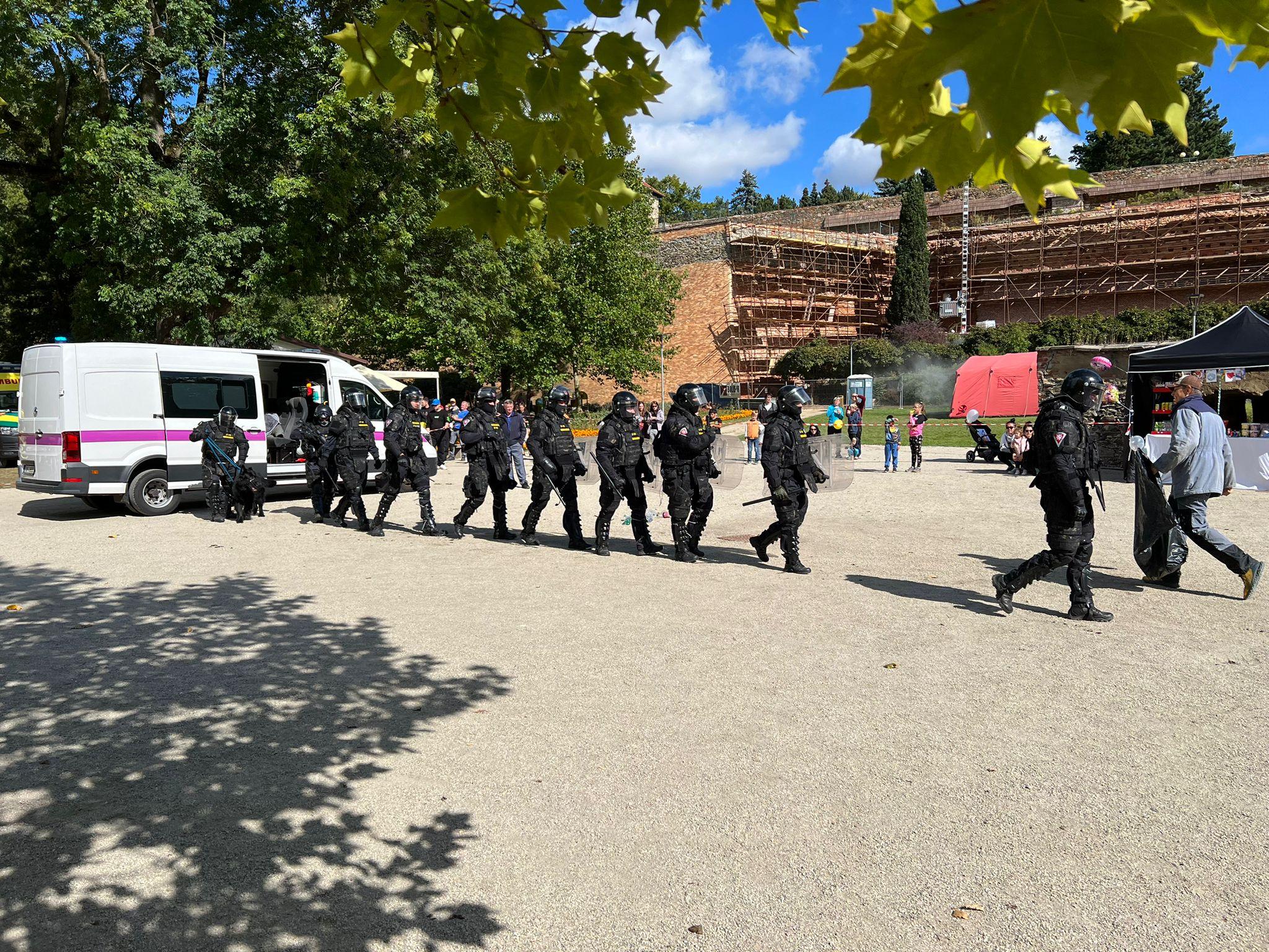 Zájemci si mohli prohlédnout a vyzkoušet jednotlivé části výstroje, obeznámit se výzbrojí a potěžkat například expanzní zbraň Kraken či beranidlo. K vyzkoušení bylo rovněž posezení v eskortním vozidle.