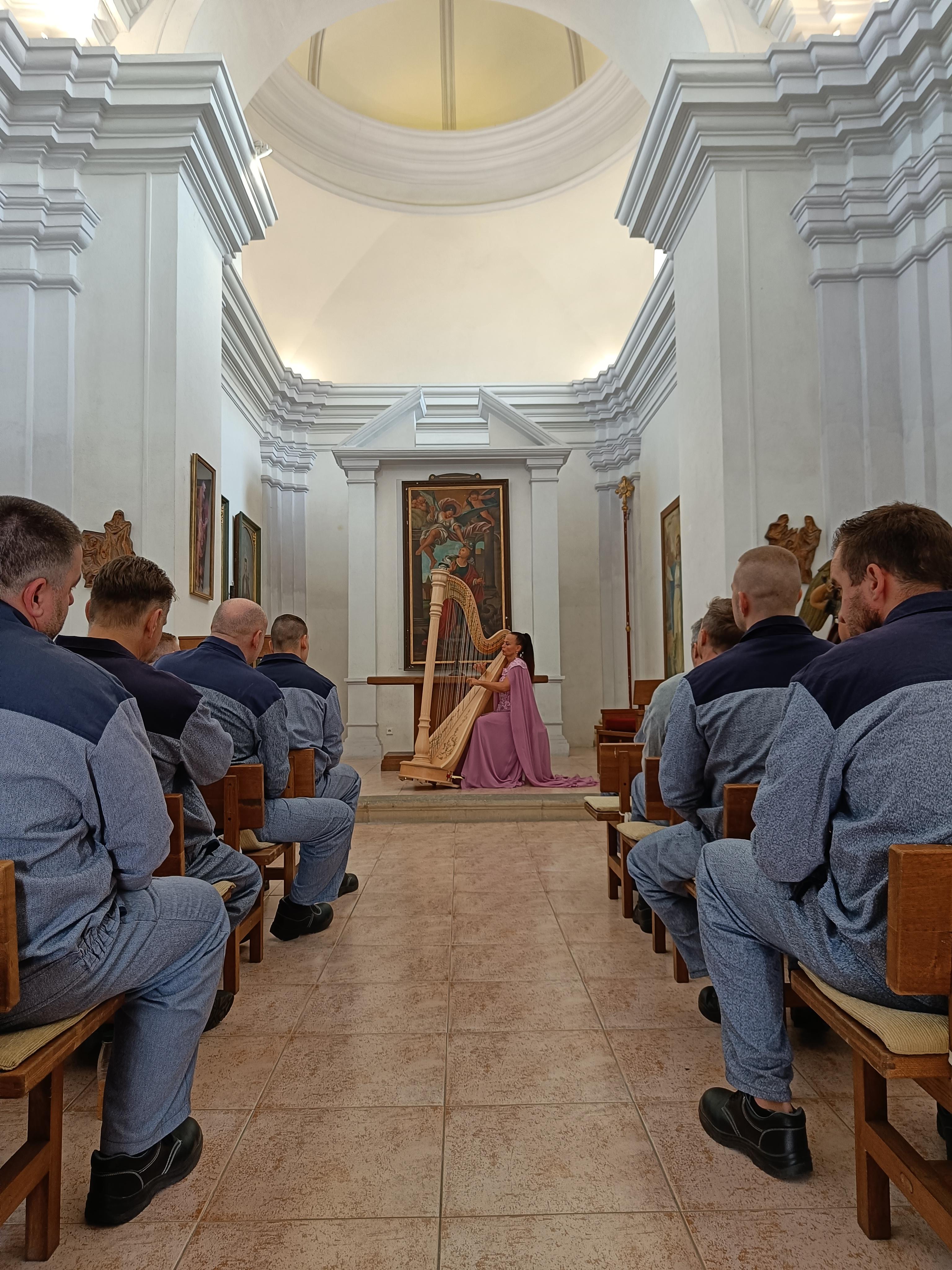 Harfa je jeden z nejstarších hudebních nástrojů vůbec a pravě o její historii a také způsobu hraní se dozvěděli přítomní odsouzení v průběhu koncertu hodně zajímavých informací. Harfistka Katarína Ševčíková klade ve svojí hře velký energetický důraz a přenos k uvolnění se, zklidnění mysli a harmonie duše prostřednictvím podmanivých tonů harfy. Svým zvukem se harfa řadí k hudebním nástrojům, které mají nejvyšší blahodárné účinky, vibrace klidu, čistoty, a to i z hlediska umělecké a léčivé muzikoterapie pro člověka.