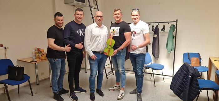Dne 30.4.2023 se konal v Praze koncert Slovenské hudební skupiny Kollárovci. Jde o uskupení mladých, talentovaných hudebníků, kteří hrají původní slovenské lidové písně v novém, modernějším stylu a také vlastní tvorbu. Před koncertem samotným jsem byl pozván do zákulisí, kde na mě čekali všichni hudebníci. Primášovi skupiny, Tomášovi Kollárovi, jsem předal krásné housle, které vyrobili odsouzení z Věznice Odolov pod vedením skvělých „mistrů“ Pavla Staňka a jeho kolegy. Chlapci byli překvapení, co odsouzení dokáží vyrobit vlastníma rukama a s jakou precizností. Originální housle sklidily velký úspěch a budou využity při natáčení některého z připravovaných videoklipů skupiny.