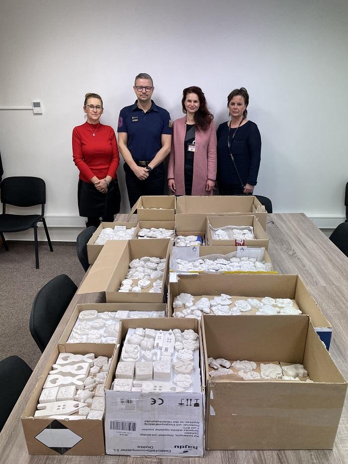 Rádi bychom touto cestou srdečně poděkovali vedeni Věznice Nove Sedlo, objekt Drahonice plk. Ing. Martinu Tomanovi a vedoucímu oddělení výkonu trestu mjr. Ing. Michalovi Charvátovi za umožnění výroby sádrových odlitků z dodaného materiálu v rámci volnočasových aktivit odsouzených. Sádrové výrobky byly vyrobené na základě žádosti Neziskové organizace LiboBells, z.s., která dále rozdělí výrobky organizacím SPC Měcholupy, FOD Žatec, PČR Žatec prevence kriminality, CDZ Žatec. Výrobky budou použity na akcích pořádaných těmito organizacemi, nebo při intervenčních terapiích s dětmi. Odlitky slouží k rozvoji kreativity u dětí, barevně si je vymaluji.