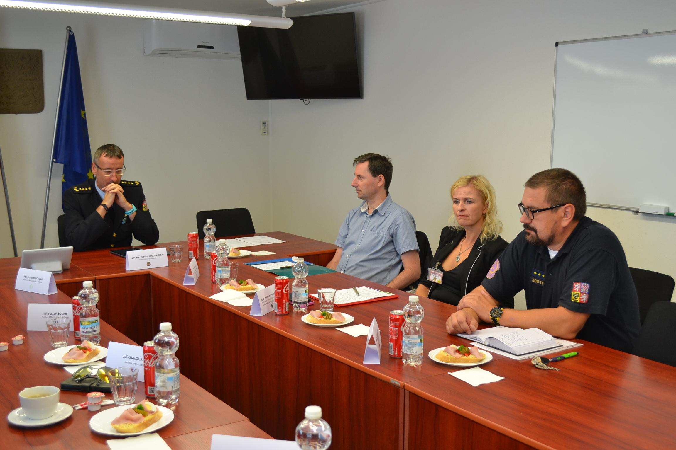 Hosté poradní komise Zdeněk Kučera, zástupce vedoucího oddělení výkonu trestu představil jednotlivá oddělení výkonu trestu, pohovořil o spolupráci s probační a mediační službou a jak se daří začlenit odsouzené do pomoci obcím v regionu. Vedoucí výkonu trestu Michal Charvát seznámil přítomné s novým projektem v objektu Drahonice, který se týká přiblížení principu komunitních, malokapacitních věznic, kdy cílem je změna stylu běžného života se zaměřením na povinnosti vězněných žen v kontextu samostatnosti. V závěru jednání byla projednána účast členů poradní komise na další čtyřleté období.