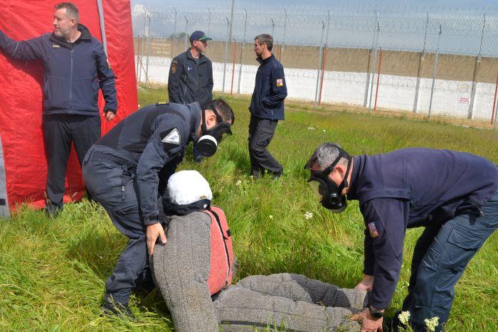 Součinnostní cvičení jsou nedílnou součástí služební a profesní přípravy všech příslušníků věznice. V měsíci květnu proběhlo cvičení ve spolupráci s Hasičským záchranným sborem ze Žatce. Účelem byl praktický nácvik používání ochranných masek s filtrem. Úkol pro všechny příslušníky byl jasný, vyhledat a co nejrychleji dostat ze zadýmeného prostoru figurínu simulující lidské tělo. Cílem praktického nácviku je co nejvíce přiblížit situaci při vzniku požáru v prostorách věznice a připravit příslušníky na zákrok, kdy se neobejdou při práci bez ochranných masek.