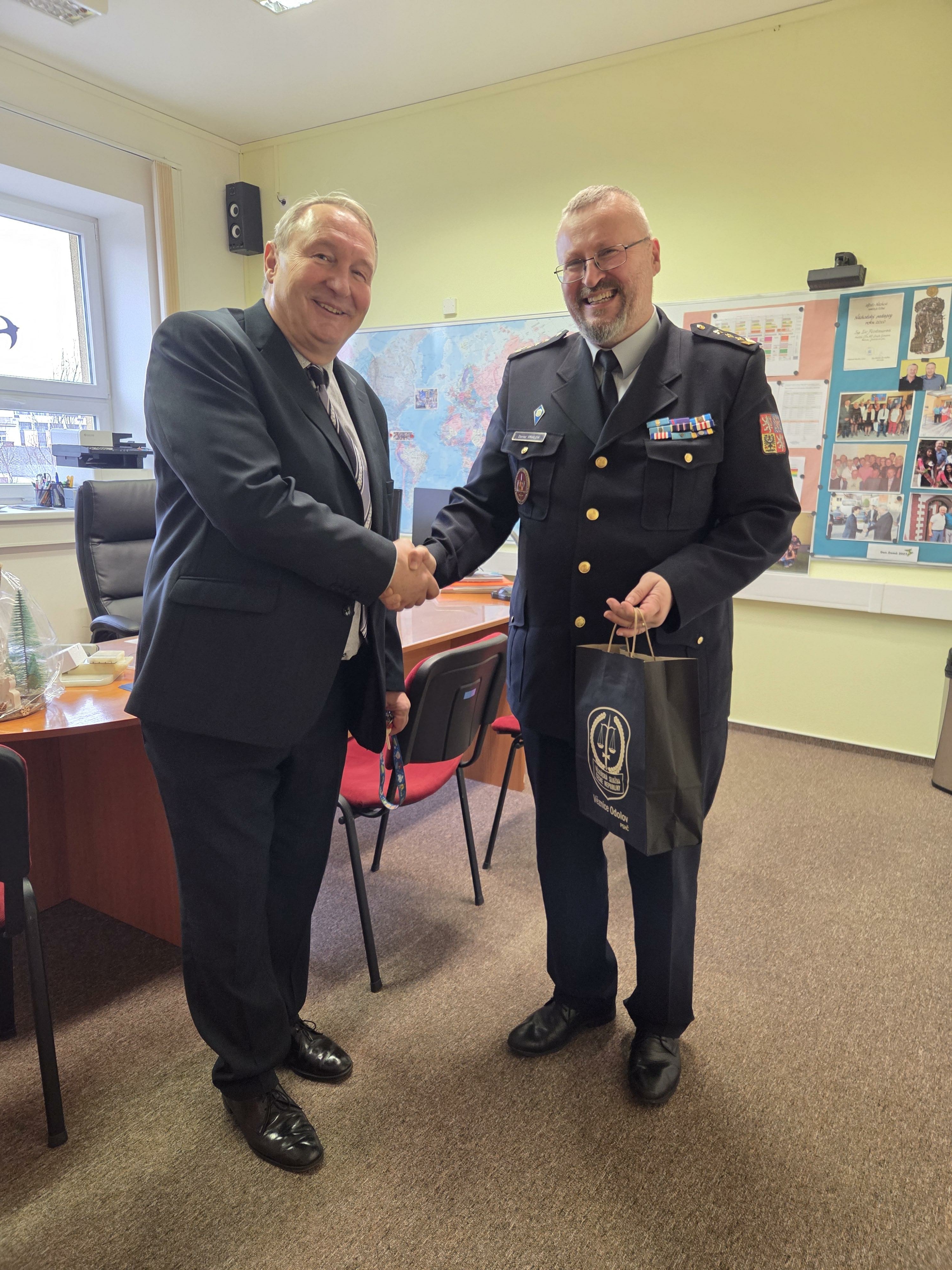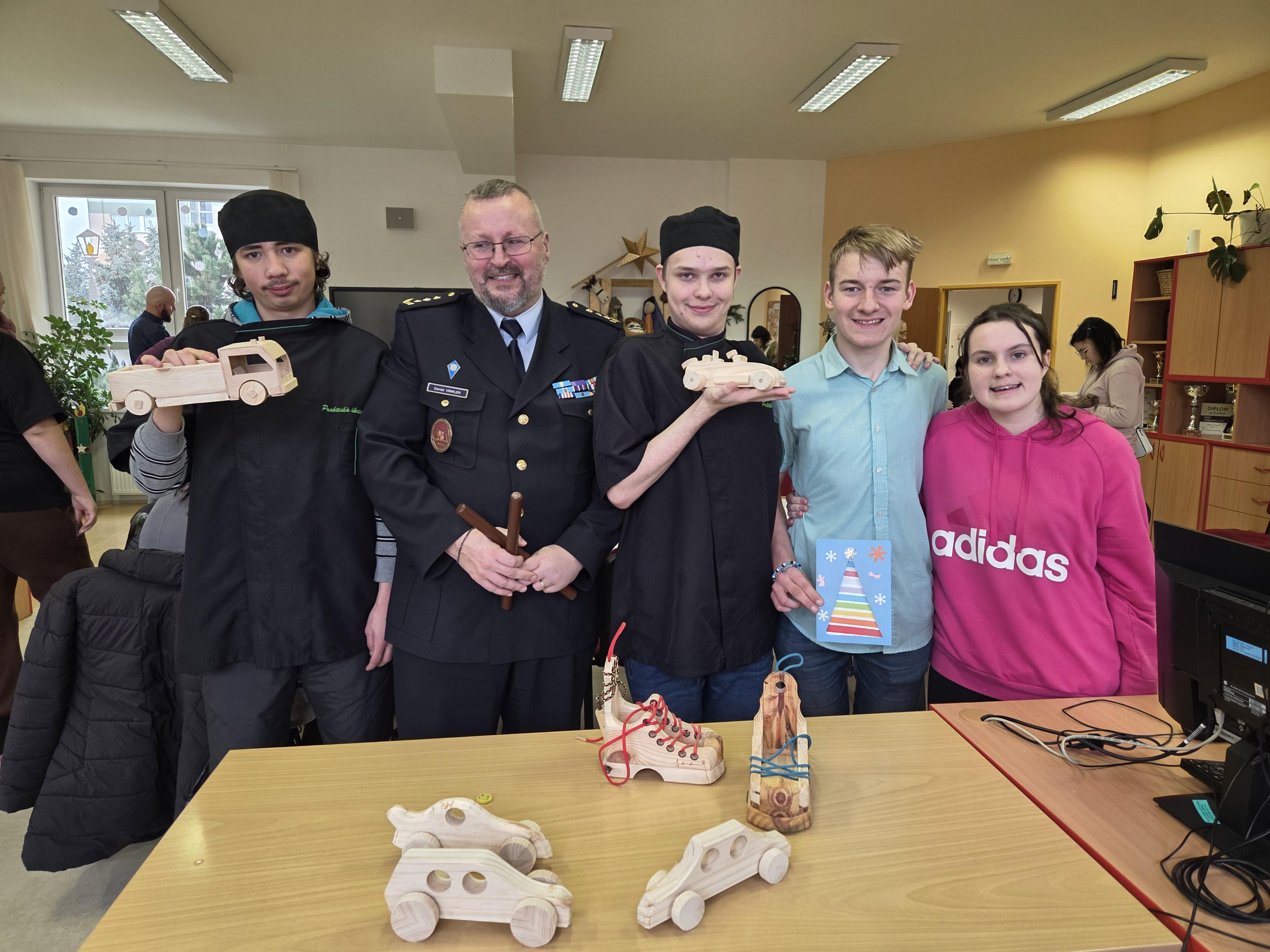 Ředitel věznice Daniel Vinkler předal letošní kolekci nových modelů řediteli školy Ivo Feistauerovi jako malý vánoční dárek. Tento dar je nejen podporou vzdělávací činnosti, ale také symbolem spolupráce a vzájemné pomoci, která přináší radost dětem i dospělým.