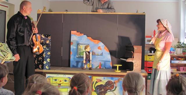 Secvičené pásmo scének a písniček humornou formou seznamuje děti s různými druhy hudebních nástrojů, včetně houslí vyrobených ve zdejší dřevomodelářské dílně. Barevné obrázky hudebních nástrojů zhotovili také členové dřevomodelářského kroužku odolovské věznice. V nejbližší době má soubor v plánu navštívit děti v dalších 5 mateřských školách v okolí. Jako dárek je pro každou školku připraven zmenšený model scény, včetně loutky "Kulíška".