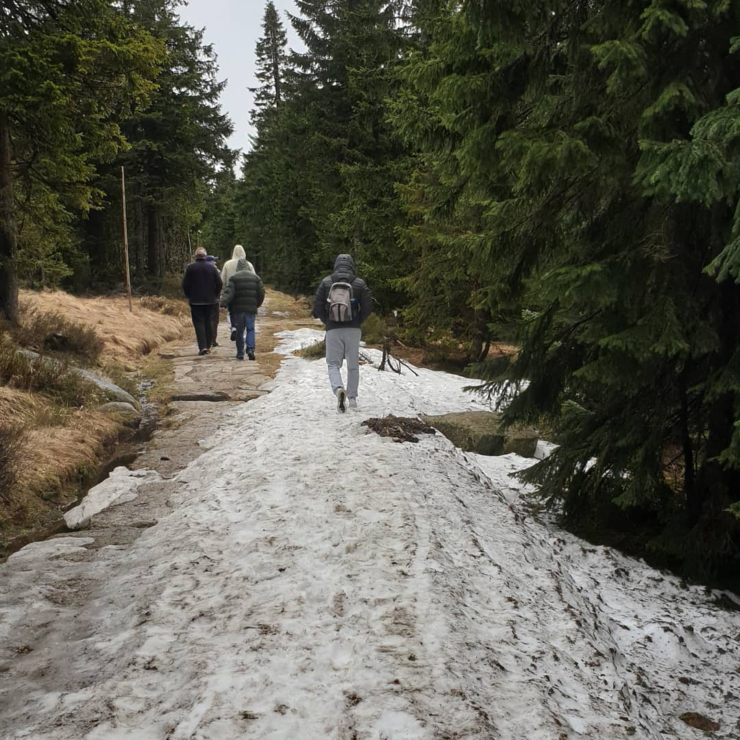 Výlet byl plánovaný dopředu, nebylo tedy možné změnit den kvůli špatnému počasí. Pan Krakonoš nás za běžného provozu zotavovny má rád, na všechny akce se vždy počasí umoudřilo…..jen to výletové úterý asi odjel na očkování. Ráno bylo na Přední Labské pět stupňů. Chlapi před domluvenou desátou hodinou čekali venku u auta. Všichni v mikinách! Jako by šli na motýly. Vrátila jsem je pro zimní bundy, a jak sami pocítili při vystupování z auta na Špindlerově boudě, měla jsem pravdu. Nahoře foukal pořádný vítr, byla mlha a znovu začalo mírně pršet. Ale to nás neodradilo. Vyrazili jsme směr Petrova bouda, podívat se, jak se povedla přestavba. Chtěla jsem fotit momentky, ale přes velký vítr a mlhu nebyly žádné výhledy. Moje ruce byly tak zmrzlé, že telefon nereagoval ani na otisk prstu! Ta dnešní technika! Pak jsme seběhli k Moravské boudě, kde k našemu smutku bylo výdejní okénko zavřené. Ale nás nedostanou! Naše provozní kuchyně paní Hložková, která mimochodem šla s námi, nám nechala v kuchyni připravit obědový balíček. V pytlíku na nás čekal pořádný řízek mezi dvěma chleby, jablíčko, sušenka a láhev pití. Říkala jsem si, hlady tedy neumřeme, možná jen umrzneme. Že by nás nenašli, jsem strach neměla, přece jen jsme byli speciální skupina, která nahlásila svůj odchod z Přední Labské a měla určený čas návratu. Chvilinku už to vypadalo, že na nás vysvitne sluníčko, cestou dolů do centra Špindlerova Mlýna to vypadalo tak nadějně. Prošli jsme centrem, vzali to zadní cestou k Medvědínu, kde jsme si předem domluvili zastávku ve Srubu pod Medvědínem u výdejního okénka. Všichni jsme se těšili na něco teplého do břicha. Jen jsme dojedli, spustil se další déšť snad i se sněhem. A to už bylo i na nás, kteří jsme se na procházku venku tolik těšili, moc. Naskákali jsme do přistaveného transportéru a hurá „domů“. U večeře jsme probrali výlet a přemýšleli o dalším. Dala jsem odsouzeným několik návrhů, kam by se dalo v příštím měsíci vyrazit. Přece jen červen bude v zotavovně ještě volnější. Vzhledem ke koronavirovým dopadům je ještě hodně červnových akcí zrušených. Zato v červenci a srpnu se pánové na svých pracovních úsecích budou pěkně otáčet. Zotavovna je předběžně skoro naplněná rekreačními pobyty, takže odsouzení z Přední Labské budou odcházet zaučení pro několik oborů. Hned při nástupu všem říkám, že jsou ve výkonu trestu v civilním prostředí, kde na ně bude pohlíženo jako na zaměstnance. Jsou zde i ubytovaní a chci, aby se podle toho chovali. Nejen mezi sebou, k zaměstnancům, ale ke každému, koho tu potkají. Vědí, že nemám ráda slovo – neumím. Co neumí, to se tu naučí. A věřte, že za 14 let mé práce v zotavovně odsud odcházelo už hodně chlapíků, kteří při nástupu netušili, že umí tak skvěle vařit, uklízet pokoje, natírat, malovat nebo i nasazovat řetězy na kola aut v zimních měsících. Kdo chce, všechno se naučí, na Přední Labské tu možnost má.