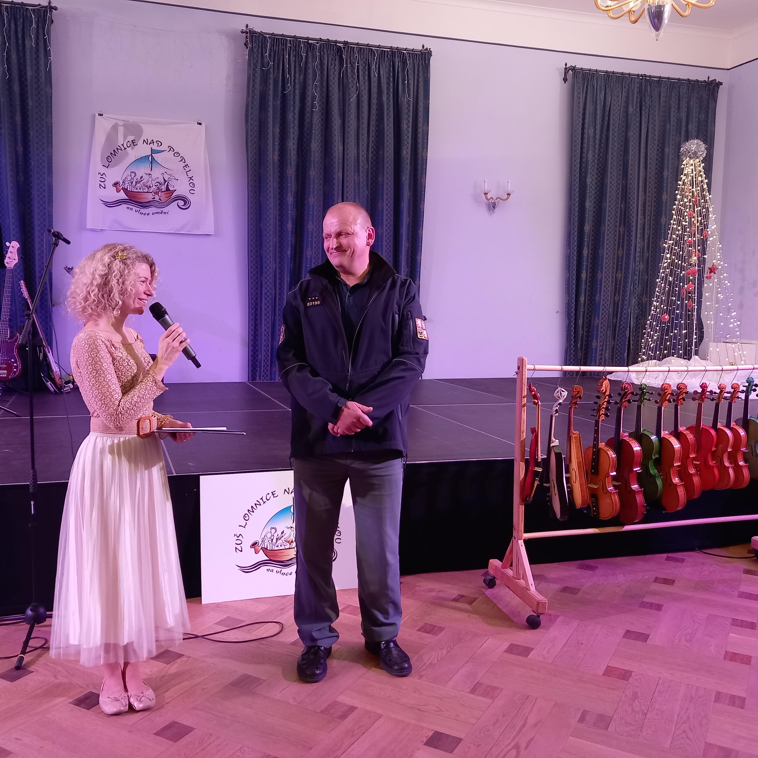 Zámek v Lomnici nad Popelkou se pyšní krásným reprezentativním sálem, kde město pořádá nejrůznější kulturní akce. V adventní čtvrtek 19. prosince tu základní umělecká škola přichystala nádherný vánoční koncert, kde se střídala pestrá vystoupení hudební s tanečními. V druhé polovině nabitého programu dostala svůj prostor Věznice Odolov, jejíž zaměstnanec Pavel Staněk představil posluchačům činnost dřevomodelářské dílny. Připomněl zásluhy pedagoga volného času Zdeňka Hetflejše, jehož odhodlání a entuziasmus jsou hnacím motorem dílny. Ředitelka umělecké školy Klára Ptáčková na akci srdečně přivítala také vedení věznice, ředitele Daniela Vinklera a jeho prvního zástupce Rudolfa Mášu a poděkovala za velkorysý dar v podobě několika houslí, viol a violoidů, které byly předány do užívání žákům školy.