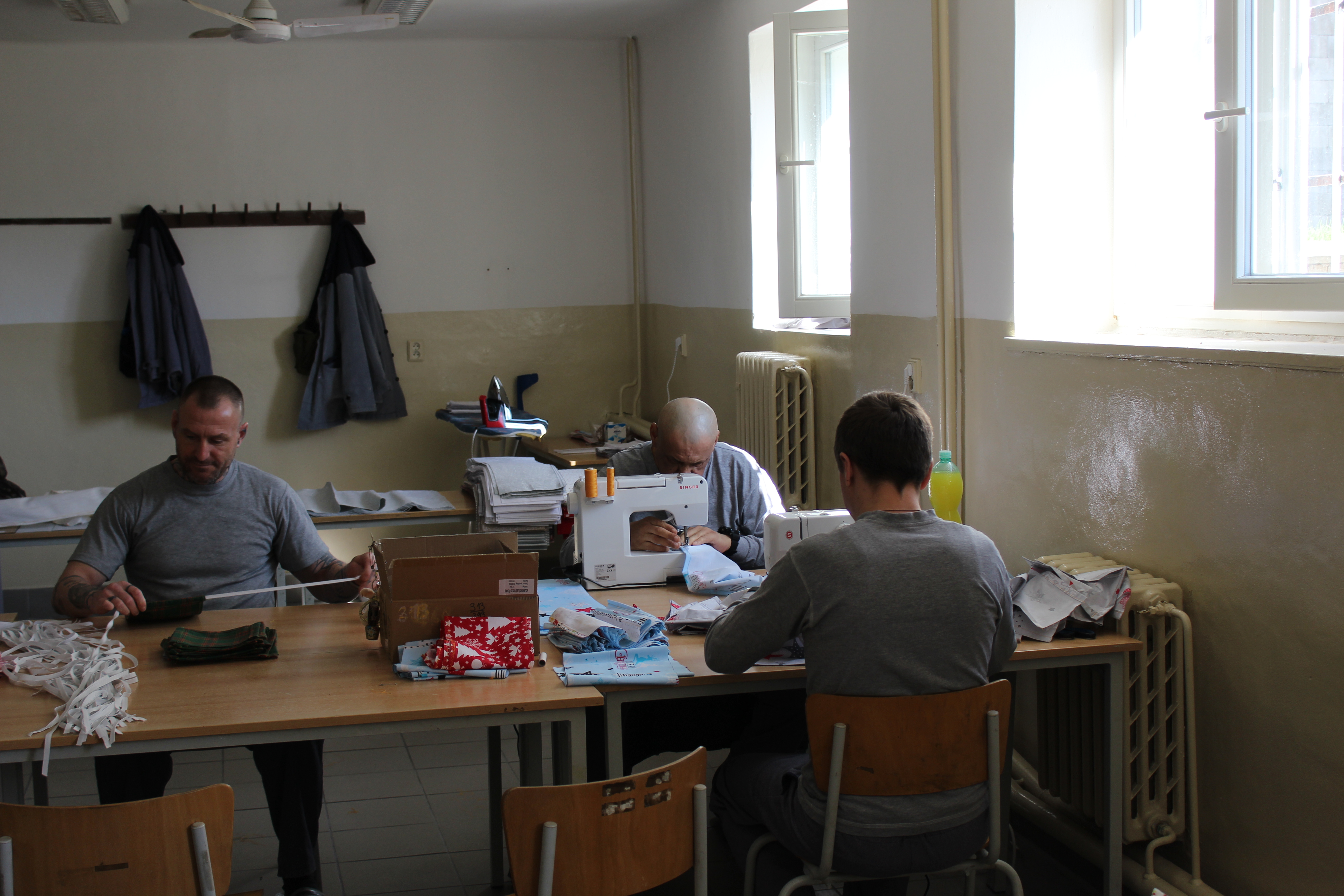 Oráčov 23. března (VS ČR) Jelikož je celkový nedostatek roušek a respirátorů na celém území ČR, tak se Věznice Oráčov připojila k řadě dalších věznic a pustila se do šití roušek pro své zaměstnance a vězněné osoby. Skupina 8 odsouzených začala se šitím ve čtvrtek dopoledne, pracovali i přes víkend a k dnešnímu dni tak máme ušito 1400 kusů roušek. Již jsme je začali poskytovat zaměstnancům a posléze jimi budeme zásobovat i vězně. Podstatné je momentálně vyrobit dostatečnou zásobu pro potřeby věznice.