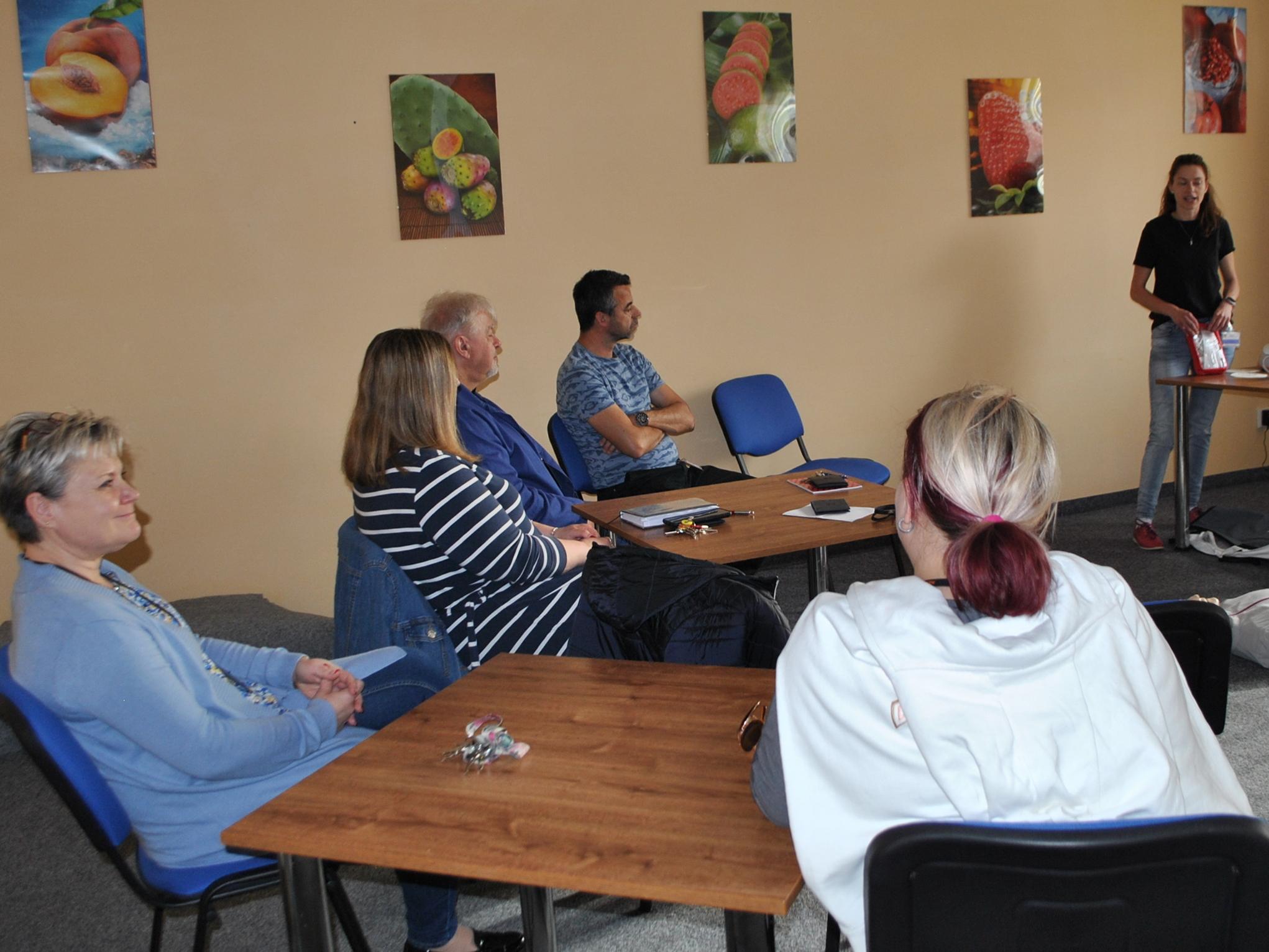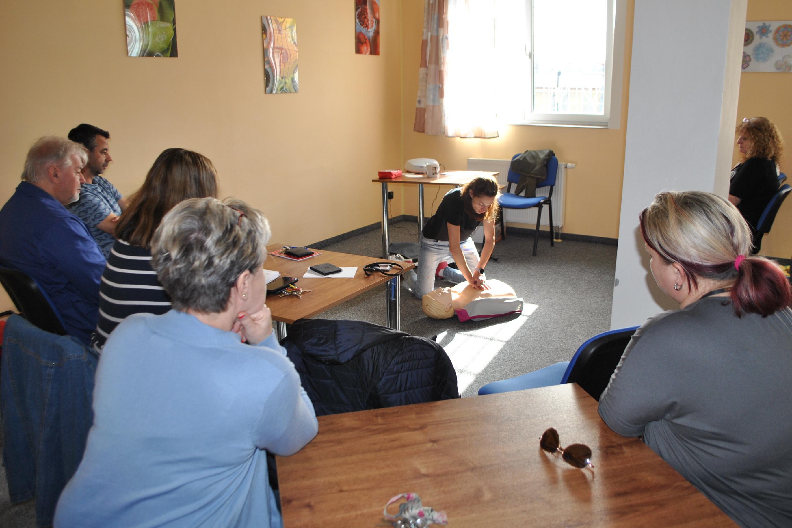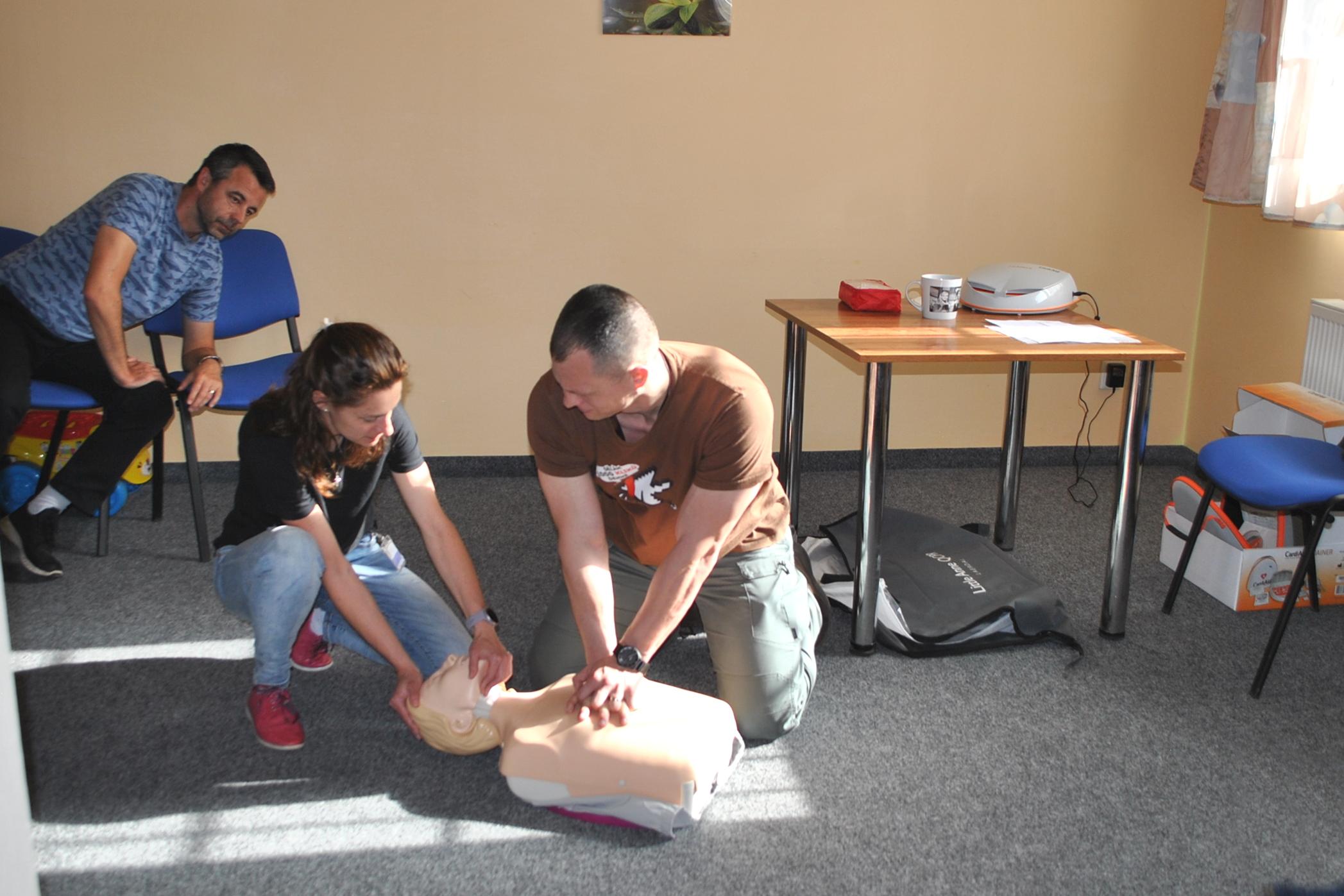 Zaměstnanci si na vlastní kůži vyzkoušeli postupy a činnosti, kterými mohou pomoci zachránit život. Teoretická výuka se střídala s praxí, což lépe pomohlo pochopit a naučit se, jak pomáhat a nebát se řešit život ohrožující situace. Byla možnost si vyzkoušet například základní vyšetření a diagnostiku, bezpečnost při poskytování první pomoci, péči o pacienta do příjezdu ZZS, komunikaci s profesionálními operátorkami, co je aplikace Záchranka a jak se používá, co je AED-automatický externí defibrilátor, resuscitaci na resuscitační panně.