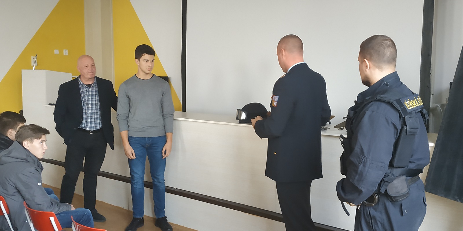 OSTROV 22. října 2018 (VS ČR) Další z přednášek proběhla ve společenském sále Věznice Ostrov pro žáky 4. ročníku TRIVIS – Střední škola veřejnoprávní Karlovy Vary. Přednášku vedl vedoucí oddělení prevence a stížností mjr. Mgr. Dušan Držík, který žáky seznámil s činnostmi zaměstnanců ve Věznici Ostrov, s rozdíly a specifiky výkonu vazby a výkonu trestu odnětí a s problematikou nepovolených věci v objektu věznice. Přednášky se rovněž zúčastnila sociální pracovnice Mgr. Jiřina Hanzelová, která žáky seznámila s činností speciálních pracovníků v oddělení pro odsouzené trvale pracovně nezařaditelné. Zpestřením přednášky byl o i vystoupení vedoucího personálního oddělení Mgr. Vilibalda Schlapáka, který přítomné a potencionální zájemce o práci ve věznici seznámil s podmínkami přijetí do pracovního nebo služebního poměru. Žáky dále zaujala praktická ukázka výzbroje a výstroje příslušníka zásahové jednotky s patřičným komentářem vedoucího oddělení vězeňské stráže mjr. Ing. Marka Oravského. Dle reakcí se žákům přednáška velice líbila.