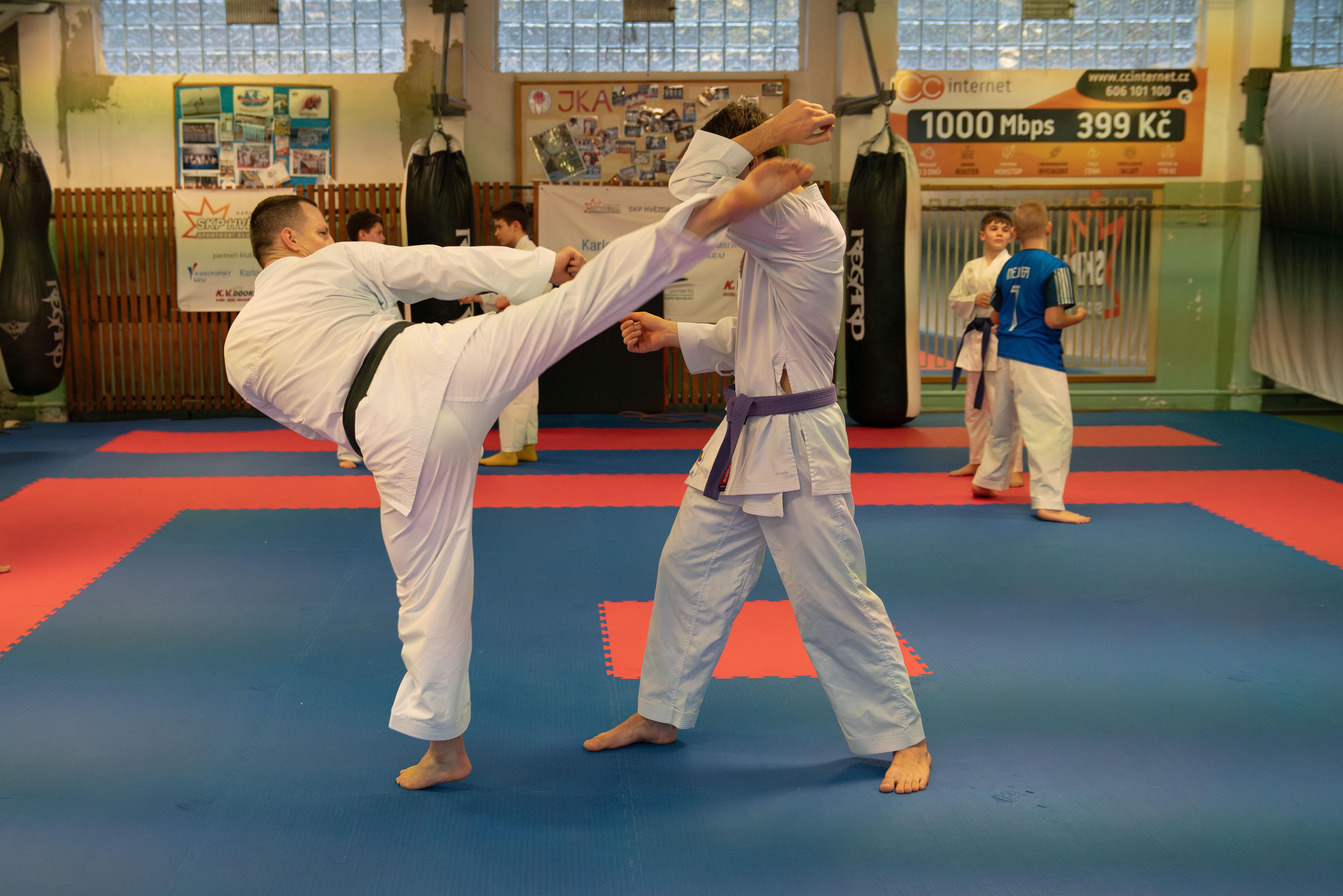 p. Záhorec: U nejmenších se zaměřujeme na pohybové základy formou her a techniky karate přidáváme pomalu. V závodnické kategorii se už věnujeme specifickým detailům, jako je načasování, správná vzdálenost a další důležité aspekty pro vítězství.