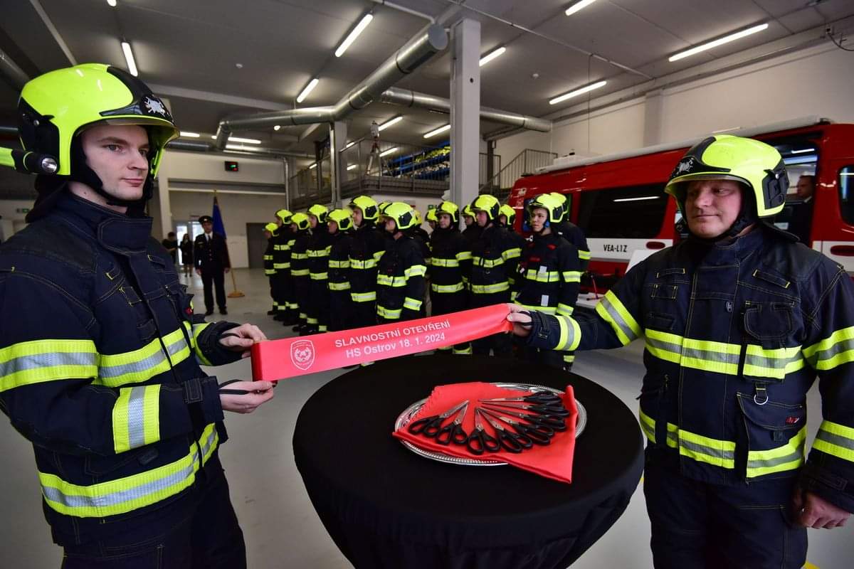 OSTROV 18.01.2024 (VSČR) Zástupci z vedení Věznice Ostrov se dne 18. ledna 2024 s radostí zúčastnili slavnostního otevření nové stanice HZS Karlovarského kraje dislokované v Ostrově.