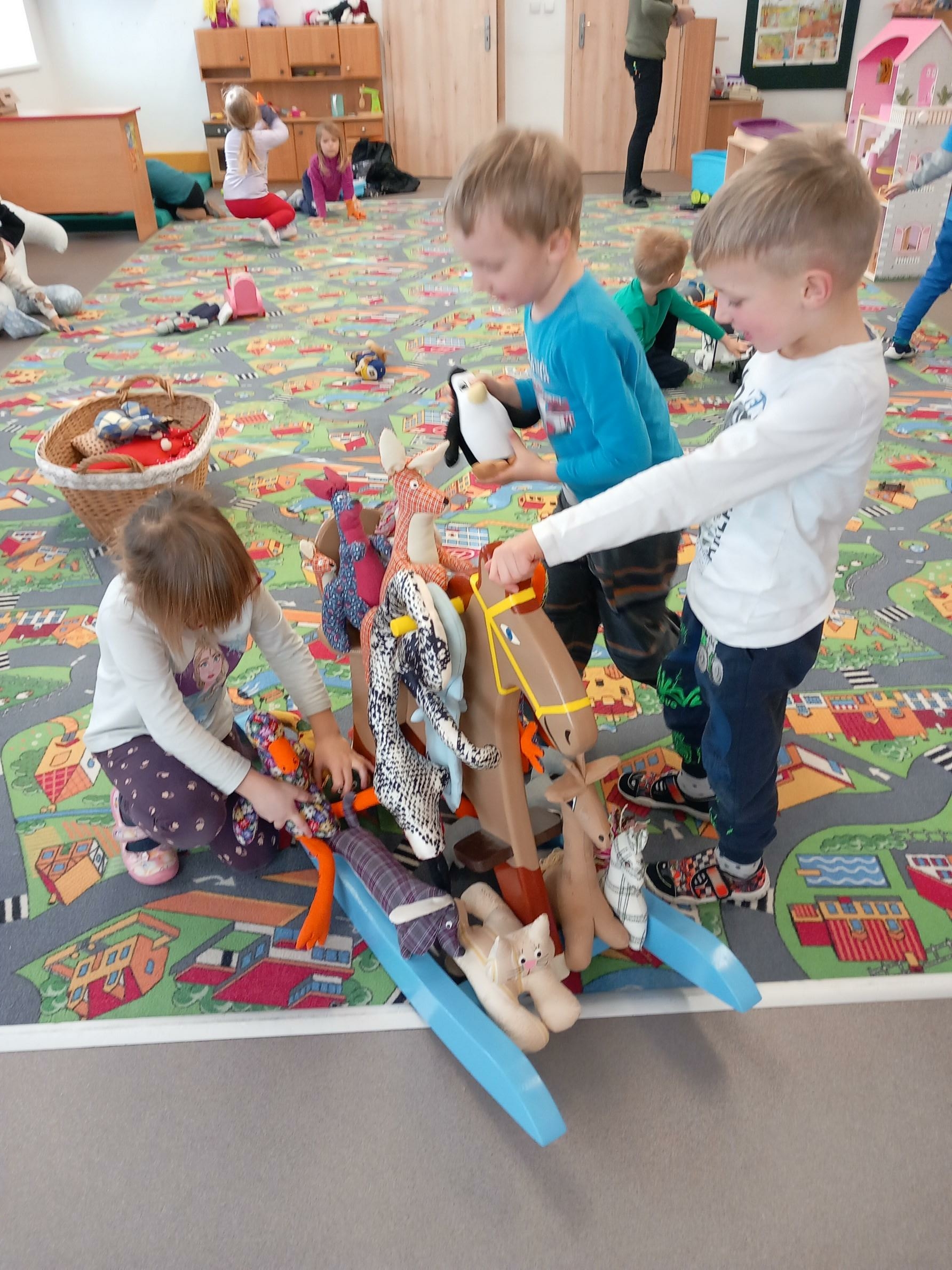 Radost a hravost dětí nebrala konce. Někde děti dostaly velkou garáž s autíčky, kočárek, jinde zase kolébku, loupežnickou bednu, plno dalších dřevěných autíček a zvířátek, které rozvíjejí jejich motoriku, zlepšují jejich koordinaci pohybů, prostě cíleně působí na rozvoj dětské osobnosti. Velký úspěch sklízely velké hračky, hlavně ohromní psi. Děti hned našly využití. Skákaly na nich, vozily se, podlézaly. Další šitá zvířátka se také těšila jejich přízni, neboť hned byla rozebrána a děti věděly, co s nimi. Také houpací kůň byl stále v pohybu. Paní učitelky měly radost z levandulových sáčků.