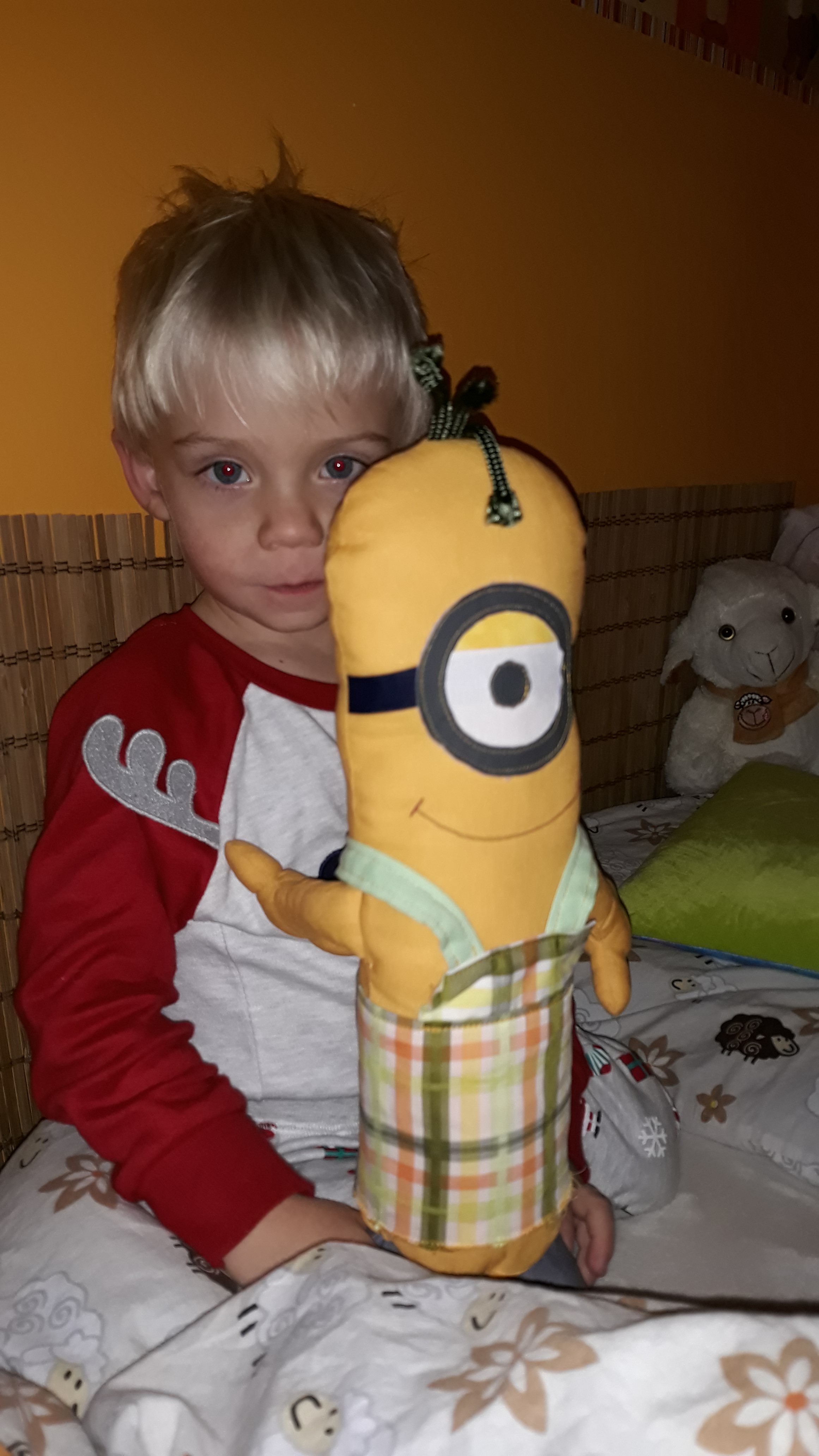 Jmenuji se Jiříček a moc rád bych poděkoval někomu kdo mi vyrobil kamaráda Mimoně! Je to můj veliký kamarád a udělal mi obrovskou radost. Nemohu usnout. Těším se na Ježíška a třeba i ty co jsi mi tento dáreček vyrobil nemůžeš spát. Povídám si teď s maminkou o tom co bych si přál a napadlo nás Vám poděkovat a připojit přání i za Vás. Já Vám přeji jen samé dobré lidi kolem Vás a také si přeju, aby Vám Ježíšek poslal takové lidi co Vám pomůžou aby ten Váš život byl ještě moc hezký. Protože Vy jste dokázal nebo Vy jste dokázala udělat velikou radost mě... a dostal jsem díky Vám kamaráda a to je veliký dárek! Tak dobrého kamaráda si od Ježíska přeji i pro Vás. Moc dekujů!
