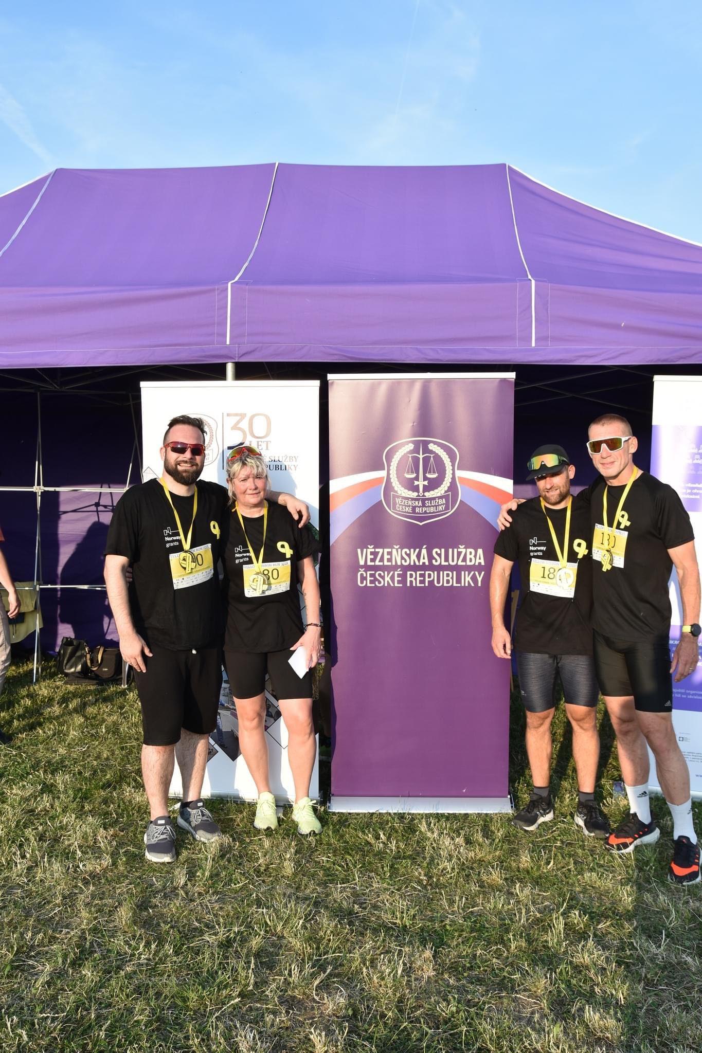 RÝNOVICE 22. června (VS ČR) –Osmého ročníku Běhu se žlutou stužkou, který se konal v lesoparku v Řepích v úterý 20. června, se zúčastnil také čtyřčlenný tým zaměstnanců rýnovické věznice. Na závod se všichni poctivě připravovali a přesto, že zde nejde o výkon, ale spíše o určité poselství, umístění na 30. místě z 89 štafet jim udělalo velkou radost.