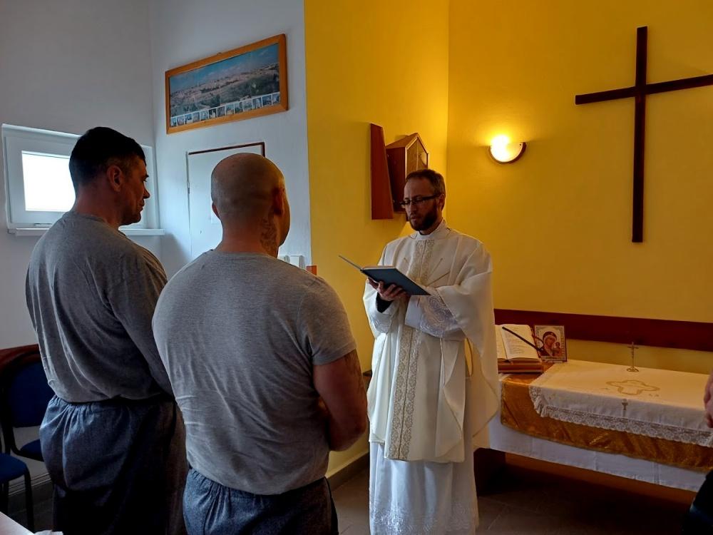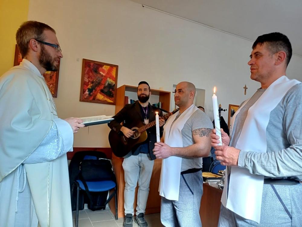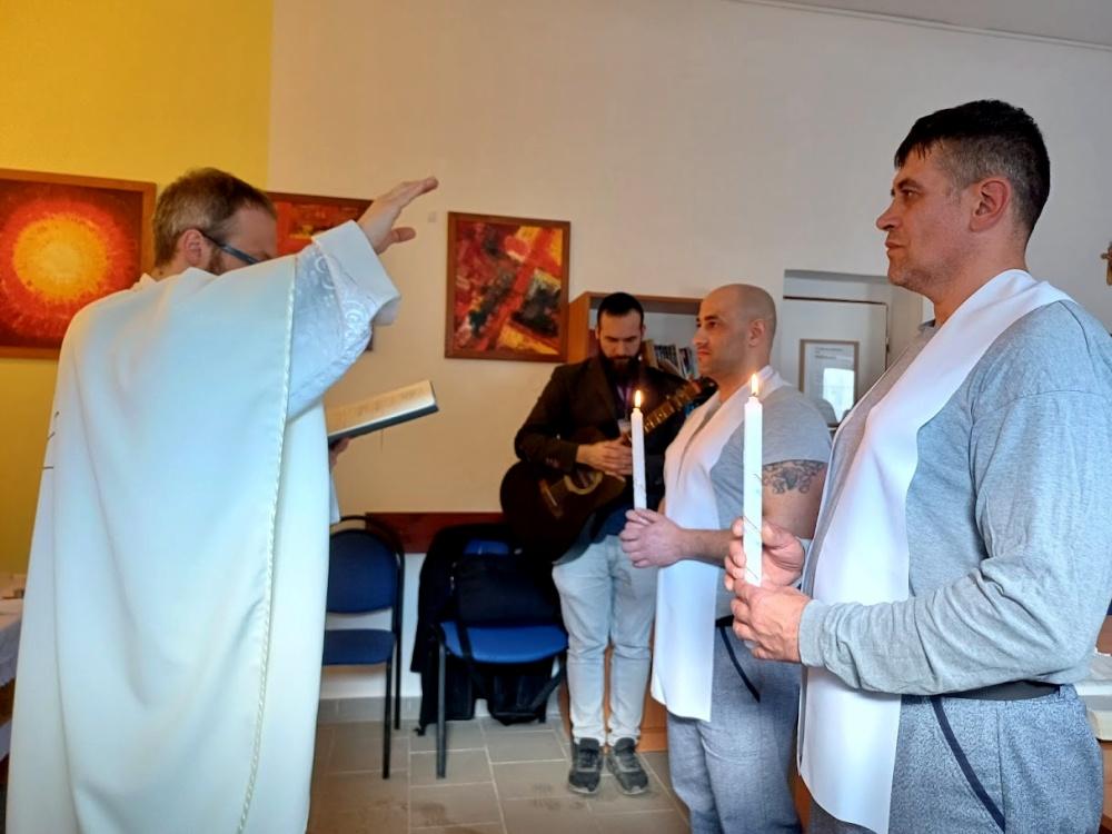 Rýnovice 10. dubna (VS ČR) - Ve Věznici Rýnovice se ve středu 8. dubna uskutečnil sváteční obřad. Dva odsouzení, po absolvování dlouhodobé duchovní přípravy, přijali svátost křtu a biřmování. Slavnostní bohoslužbu vedl děkan P. Štěpán Smolen z římskokatolické farnosti v Jablonci nad Nisou, jenž ve věznici dlouhodobě působí a zajišťuje duchovní péči pro odsouzené.