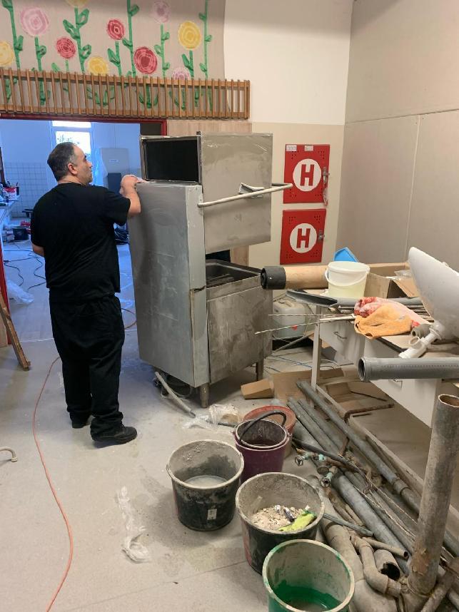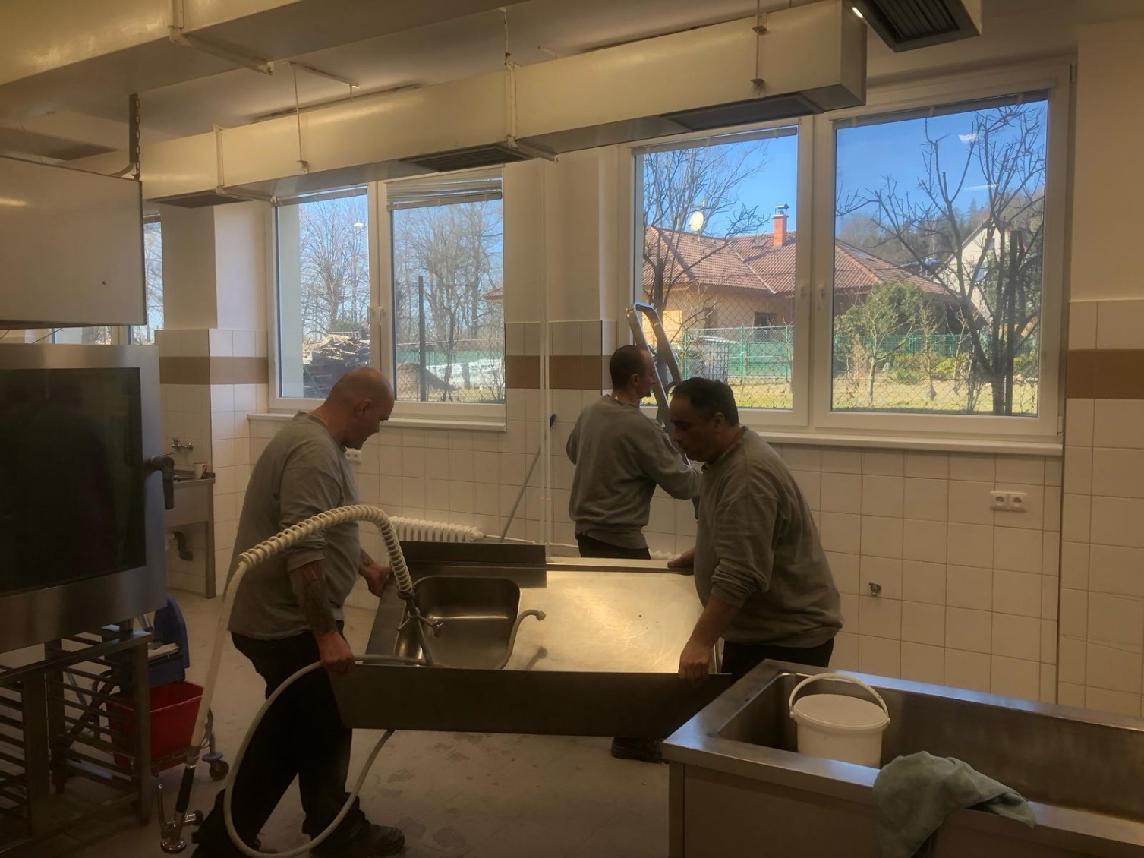 Podle ředitelky školy bylo nutné několik týdnů odstraňovat betonové překlady na podlaze, obklady na zdech apod. Po ukončení „hrubých“ prací byla ve všech prostorech školní kuchyně, jídelny, chodby a školní družiny velká vrstva jemného prachu. Odsouzení vysávali, omývali vrstvy prachu z technického zařízení kuchyně, myli nábytek ve školní jídelně a pomáhali při přemísťování těžkých spotřebičů na svá místa do školní kuchyně, podle požadavku kuchařů. „Velmi si vážím vstřícnosti ředitele rýnovické věznice, pomoci vychovatelů i samotných vězňů,“ uvedla ředitelka Mašindová. „Jen díky této pomoci se nám podaří otevřít školní kuchyni ve stanoveném termínu.“ Práce na úklidu a obnovení školní kuchyně budou pokračovat i v tomto týdnu.