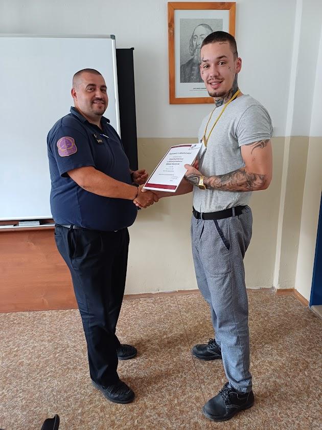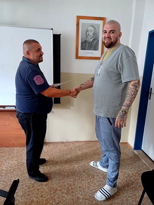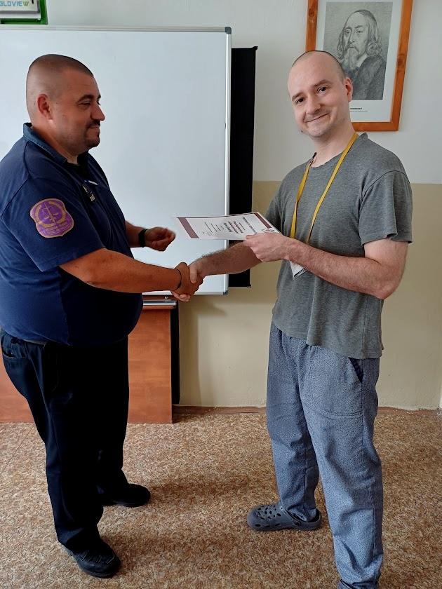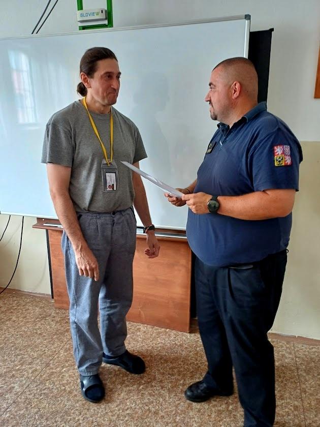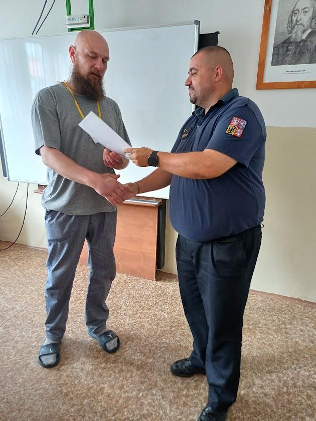 RÝNOVICE 22. července (VS ČR) – Certifikát o úspěšném absolvování programu FGDP (Finanční gramotnost a dluhové poradenství) včera převzalo z rukou vedoucího výkonu trestu Petra Mikuly deset odsouzených. Od dubna do července proběhlo 22 výukových hodin, kde se odsouzení, pod vedením vyškolených lektorek, učili např. plánovat rodinný rozpočet, zmapovali si své dluhy, navázali kontakt s věřiteli a sestavili si plán oddlužení.