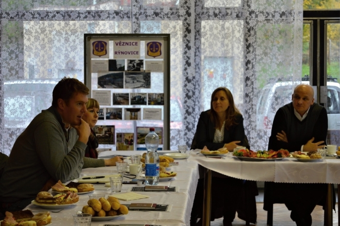 Dnes, společně s vedením věznice a vybranými zaměstnanci, posnídali zástupci sedmi soukromých firem. Tato akce navázala na workshop k zaměstnávání odsouzených, který ve Věznici Rýnovice proběhl v dubnu letošního roku. Společného ranního posezení se zúčastnili podnikatelé, kteří již rýnovické vězně zaměstnávají, ale také nové firmy, které věznice oslovila a o zaměstnávání vězňů teprve uvažují. Na úvod promluvil ředitel Věznice Rýnovice plk. Mgr. Vlastimil Kříž, který přítomné přivítal a poděkoval za dosavadní, ale i budoucí spolupráci. Krátce pohovořil o projektu Andělský strom a požádal přítomné o jeho podporu. Vedoucí oddělení zaměstnávání Ing. Jitka Čapková na připravené prezentaci ukázala vývoj zaměstnávání v historických souvislostech, tedy již od roku 1968, kdy byla věznice zprovozněna. Dále informovala o plánech věznice vystavět ve střežené části novou výrobní halu, která by zajistila práci pro více jak sto odsouzených. Následovala velmi zajímavá diskuse, ve které současní zaměstnavatelé odsouzených odpovídali na dotazy těm, kteří s tímto nemají žádné zkušenosti. Padaly zde otázky jako např. Jak přijali vězně, jako kolegy, kmenoví zaměstnanci firmy? Jaká je kvalita a výkonnost odsouzených? V odpovědích zaznělo, že výkonnost i kvalita práce vězňů je srovnatelná s běžnými zaměstnanci, že i přes prvotní obavy si kmenoví zaměstnanci na nové kolegy zvykli a problémy jsou minimální. Současní zaměstnavatelé se shodli, že má zaměstnávání vězňů řadu výhod a nejde jen o výhody ekonomické. Oceňují pružnost věznice, která reaguje na požadavky firmy, dokáže okamžitě snížit či zvýšit počet vězňů na práci, umí vězně motivovat. Na závěr pozvala zástupkyně věznice Ing. Kőnigová přítomné na prohlídku pracovišť ve střežené části věznice. Celá akce proběhla v příjemné pracovní atmosféře a doufáme, že navážeme spolupráci s novými zaměstnavateli.