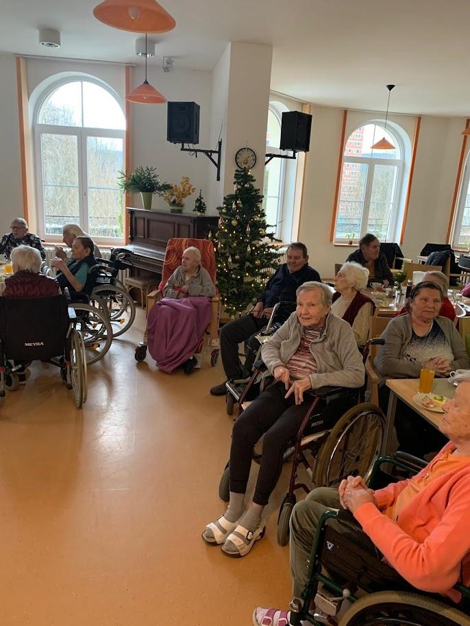 V jídelně domova se sešlo více jak čtyřicet seniorů. Většinu z nich bylo třeba dovézt na invalidních vozících a pomoci jim s usazením. Tohoto nelehkého úkolu se ujali odsouzení a pod dohledem zdravotních sester zajistili vše potřebné Na úvod krátce pohovořil vězeňský kaplan Jan Suchánek o vánočním čase a popřál všem klidné svátky. Hlavním programem bylo zpívání vánočních koled a písniček z pohádek. Zpívali téměř všichni a našel se i odvážlivec, který se nebál předstoupit před ostatní a zpívat do mikrofonu. Po celou dobu se odsouzení babičkám i dědečkům věnovali, povídali si s nimi, předali jim dárečky, které sami vyrobili. Pro obě strany bylo toto setkání velmi emotivní a obohacující.