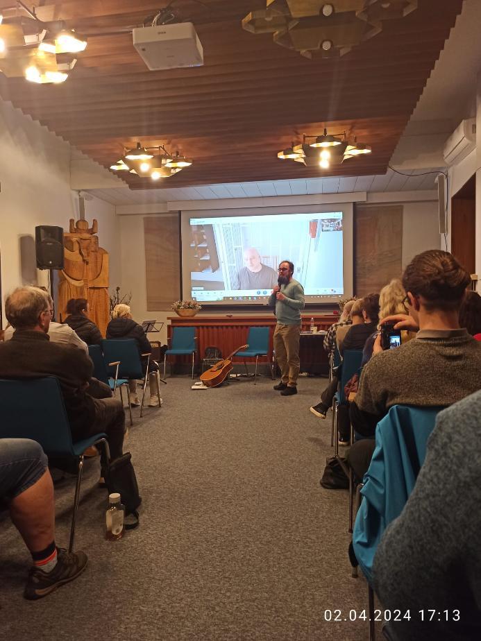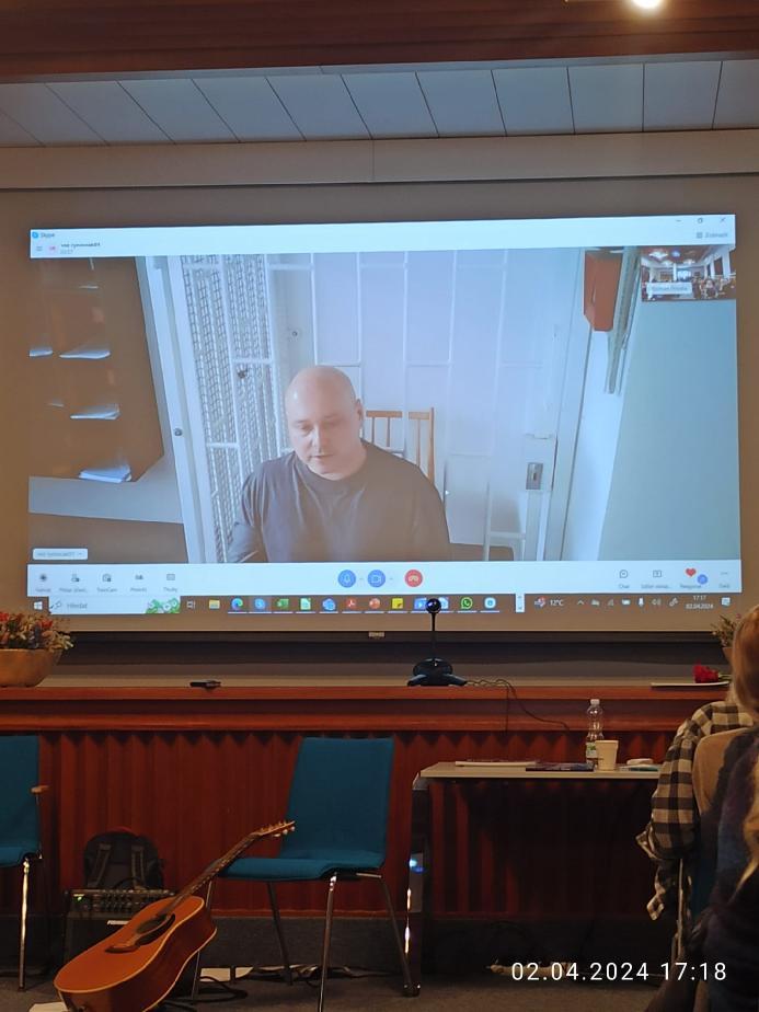 Poté se pan Červenka přes platformu Skype představil, nastínil styly svých obrazů a zaznělo i poděkování organizátorům - především R. Povalovi a prof. Štreitovi za možnost uskutečnění vernisáže. Zaznělo i slovo kaplana zdůrazňující prvek osobního pokání vězně.