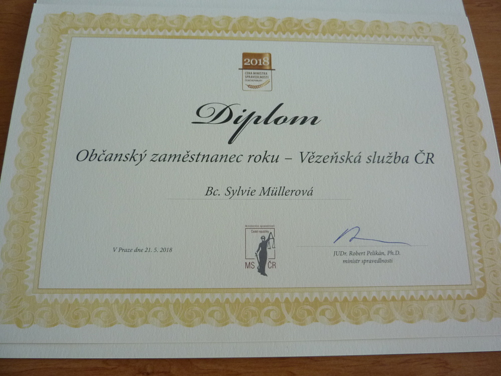 Bc. Müllerová byla oceněna v kategorii občanský zaměstnanec roku 2018 a kaplan věznice za čin roku 2018. Kaplan věznice obdržel ocenění za projekt „METANOIA II“, který byl vytvořen v souladu s Koncepcí českého vězeňství do r. 2025 a jehož hlavním smyslem je penitenciární doprovázení odsouzených před výstupem z VTOS a postpenitenciární péče o vězně propuštěné z výkonu trestu odnětí svobody za účelem snížení recidivy, jejíž příčinou je páchání trestné činnosti z nedostatku finančních prostředků v době po propuštění do získání stabilního příjmu.