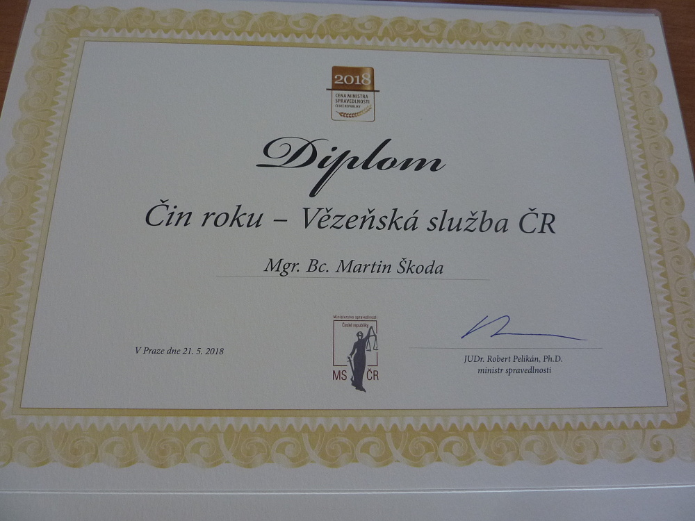 Tři desítky zaměstnanců Vězeňské a Probační a mediační služby ocenil ministr spravedlnosti Robert Pelikán v průběhu slavnostního večera dne 21. května 2018 v Brožíkově síni Staroměstské radnice. Slavnostního večera se účastnila více než stovka hostů. Poděkování ministra spravedlnosti patřilo jednotlivcům i týmům: „Je mi milou povinností vás již počtvrté přivítat při této události. Když jsme před těmi čtyřmi lety začínali, hlavní úkolem bylo přidat k práci Vězeňské služby a Probační a mediační služby vděk. Tato povolání se velmi často setkávají s nevděkem, bohužel i ze strany široké veřejnosti. Ale myslím si, že právě ti, kteří pracují s tou částí společnosti, která selhala, si zaslouží nejvíce vděku. Jejich práce si vážím a děkuji za ni,“ řekl ministr spravedlnosti Robert Pelikán na úvod večera. Ceny předával ministr společně s náměstkem sekce trestní politiky Vladimírem Zimmelem. Společně popřáli oceněným mnoho sil do další práce. Poděkování celému sboru přidal i generální ředitel Petr Dohnal. Z Věznice Stráž pod Ralskem byli oceněni dva zaměstnanci. A to vrchní sestra zdravotnického střediska Bc. Sylvie Müllerová a kaplan věznice Mgr. Bc. Martin Škoda. Oba výše jmenování si osobně převzali ocenění z rukou ministra spravedlnosti.