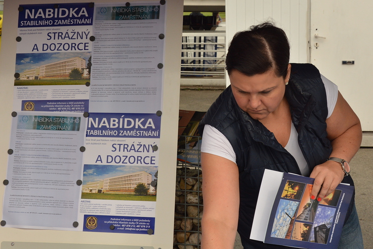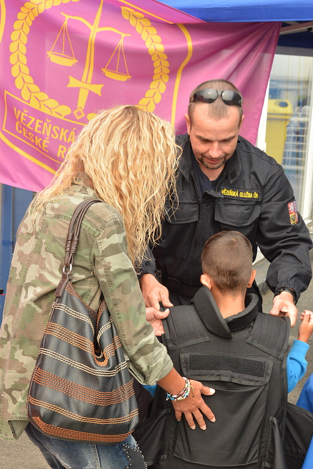 Také Vězeňská služba měla určitě co nabídnout. Návštěvníci si mohli u našeho stanoviště podrobně prohlédnout eskortní vozidlo používané pro přepravu odsouzených osob a měli možnost vyzkoušet si jednotlivé části výstroje a výzbroje příslušníků Vězeňské služby České republiky. Zaměstnanci věznice seznámili kromě toho také případné zájemce o zaměstnání u VS ČR s možnostmi pracovního uplatnění ve Věznici Stráž pod Ralskem a s aktuálními volnými služebními i pracovními místy. Pro děti byly připraveny drobné reklamní předměty s logy VS ČR.