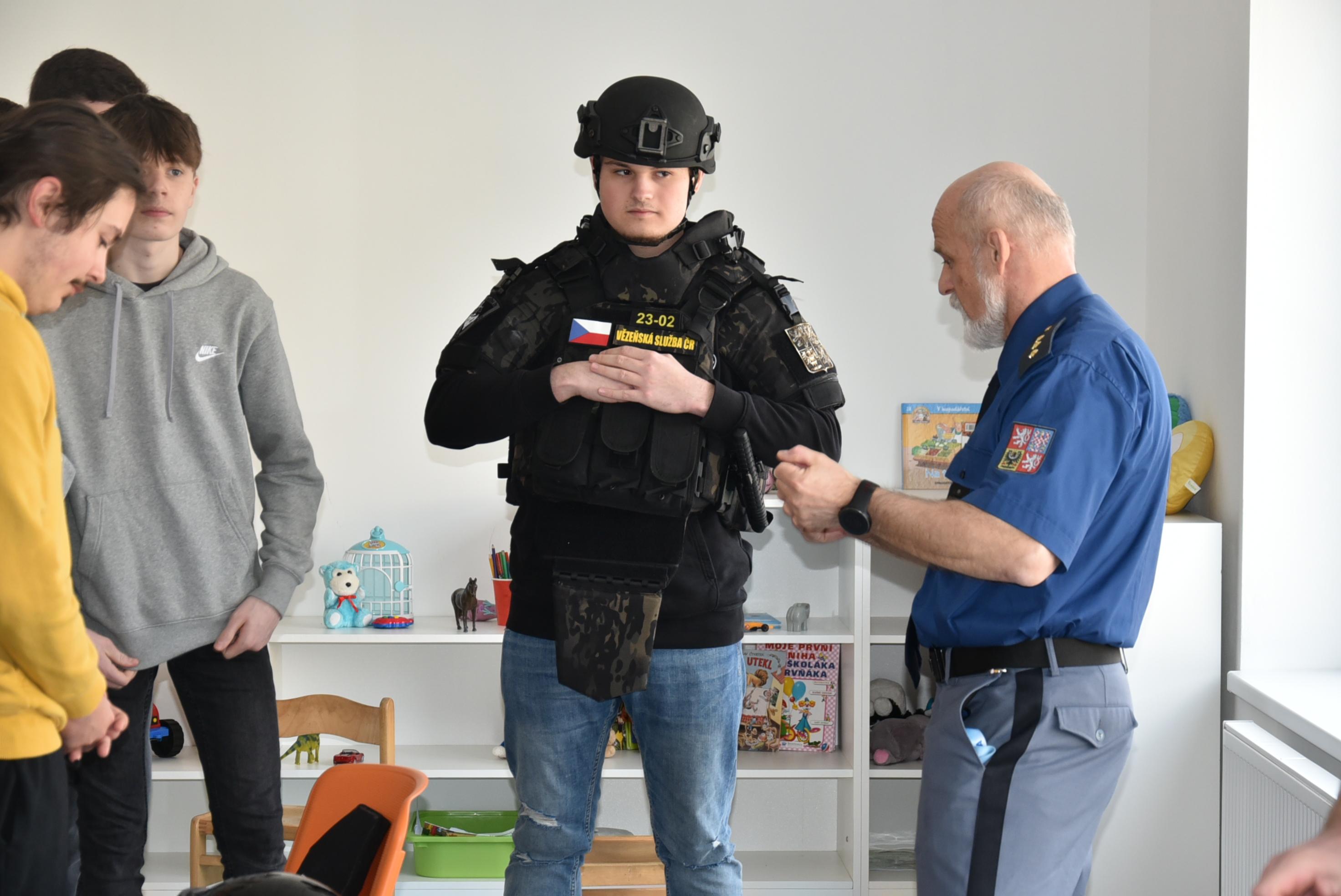 Zaměstnanci a příslušníci světelské věznice si pro studenty připravili pestrý program. 1. zástupce ředitelky věznice Jan Doležal všechny přivítal a v krátkosti jim přiblížil činnost Vězeňské služby ČR, následovala přednáška o Věznici Světlá nad Sázavou a specifikách ženské věznice. Personalistka věznice pohovořila o pracovním uplatnění a příslušníci zásahové jednotky si pro studenty připravili ukázku donucovacích prostředků, výzbroje a výstroje, kterou si měli možnost vyzkoušet. Poté následovala tolik očekávaná prohlídka věznice. Během ní jsme odpovídali na spousty dotazů, z nichž bylo patrné, že je práce v tomto neobvyklém prostředí velmi zaujala. Věříme, že získané informace alespoň některým z nich pomohou při výběru svého budoucího povolání, třeba právě u bezpečnostního sboru.