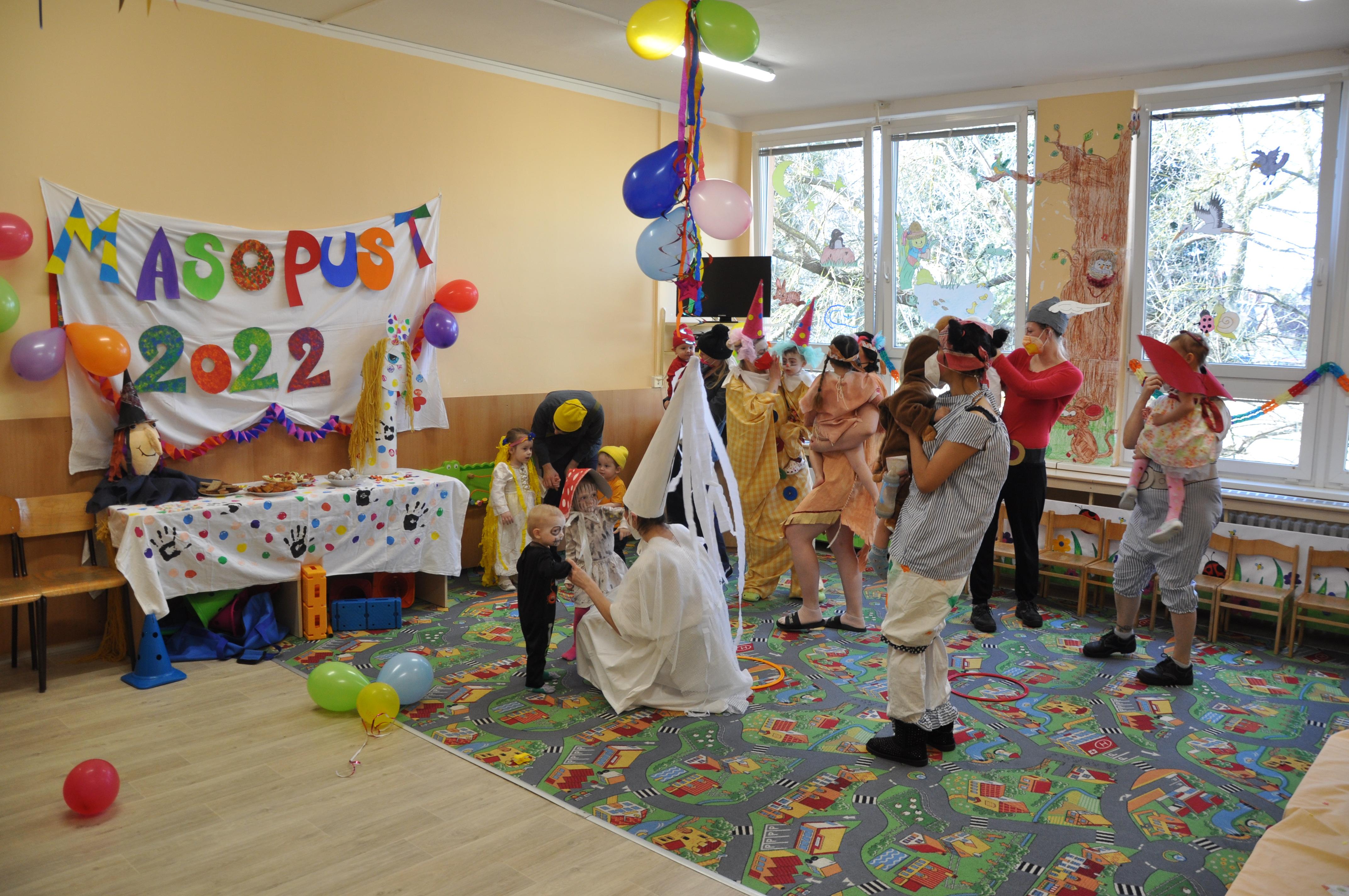 V jeho průběhu se děti představily v maskách a společně s maminkami předvedly veselé scénky a taneční vystoupení. Pro pozvané hosty pak měly připraveno drobné občerstvení. Na závěr děti obdržely diplom a sladkou pozornost, ale už jen samotná příprava na masopustní karneval v podobě líčení byla pro ně velikým zážitkem.