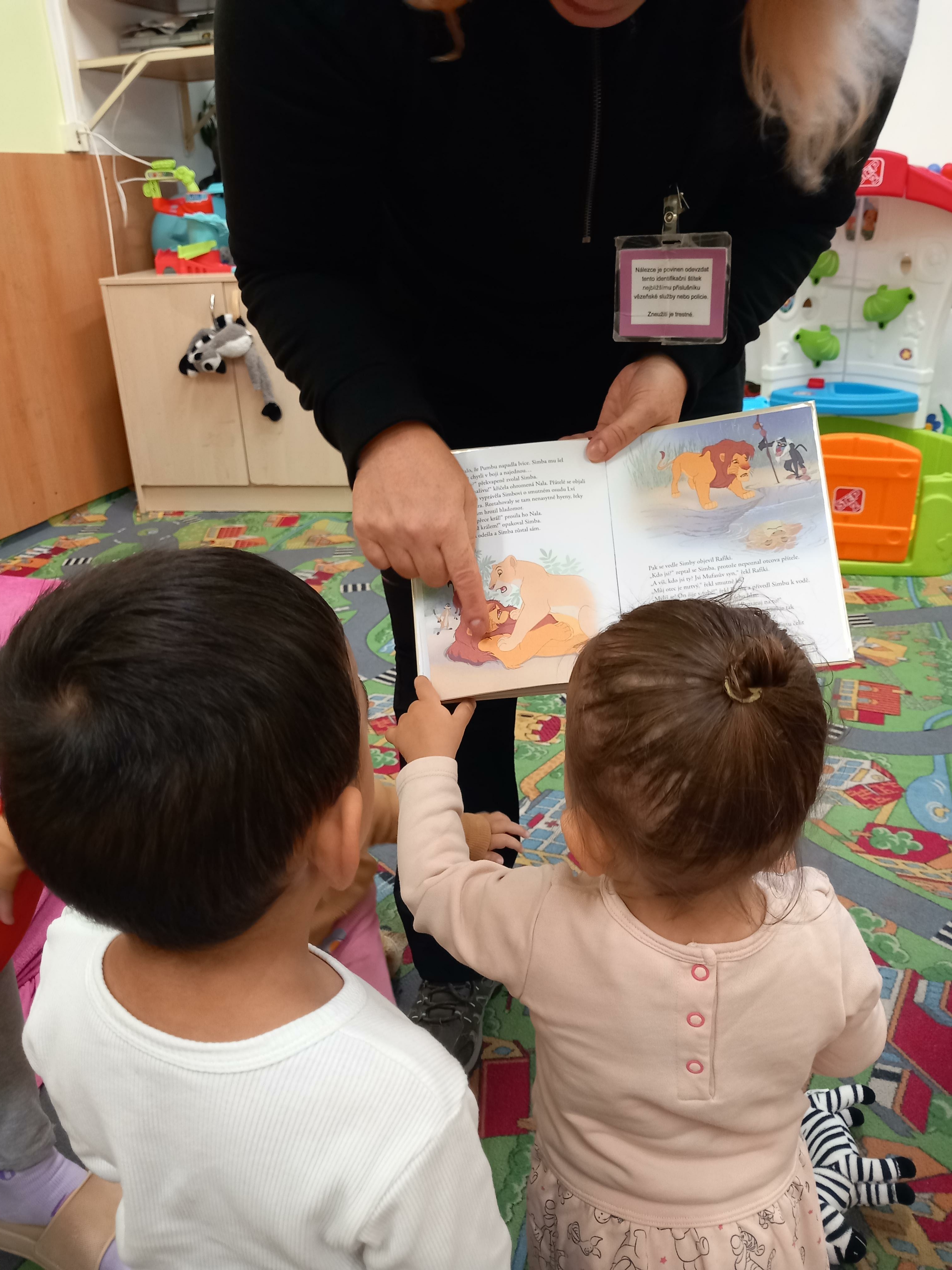 Zvláštní program byl připraven pro děti, které jsou se svými maminkami na Specializovaném oddíle pro matky s dětmi, kde byl paní vychovatelkou vybrán Lví král. K tomuto čtení jsme měli připraveného i maňáska lva, který je pro naši věkovou skupinu dětí populární.
