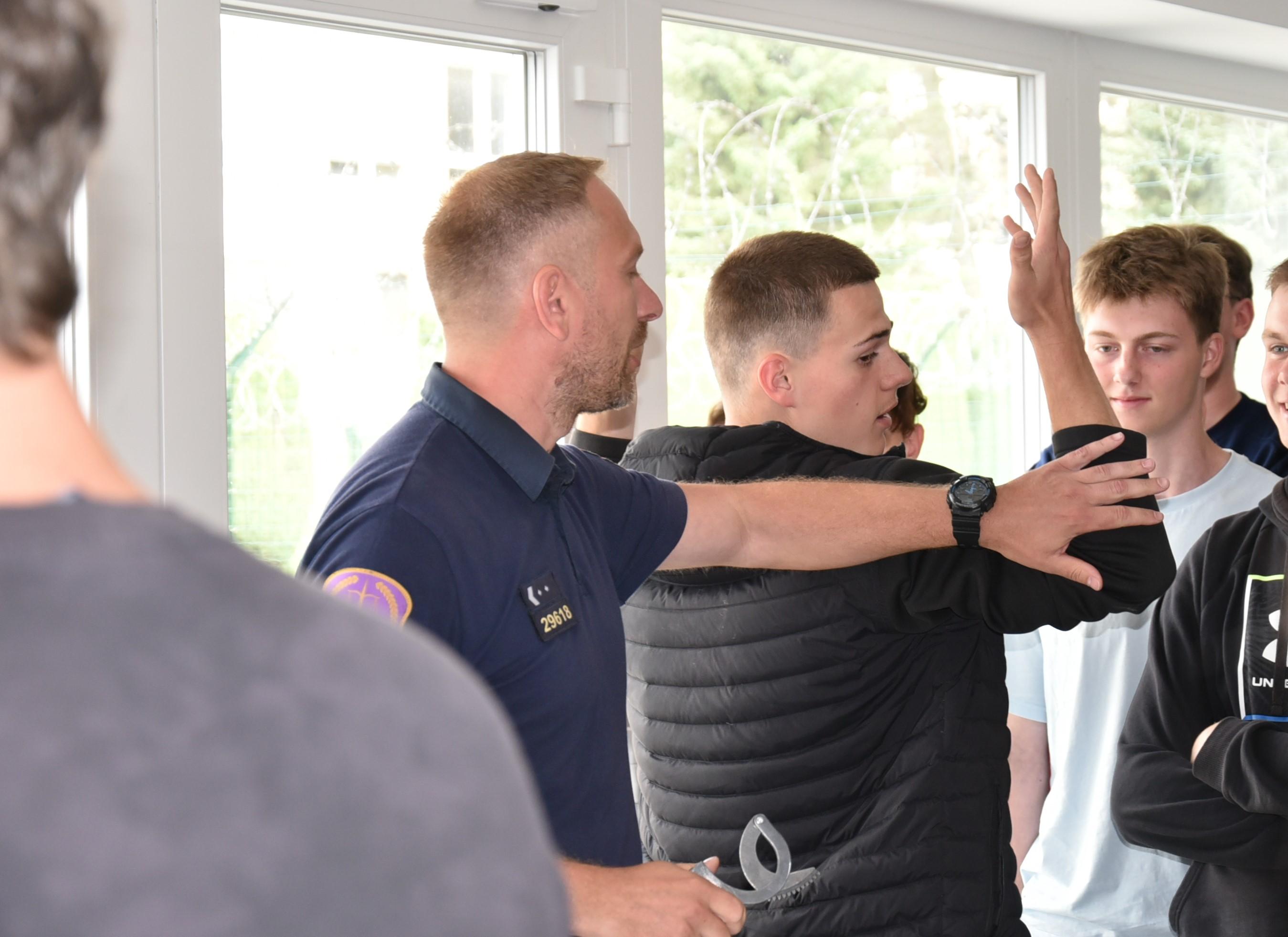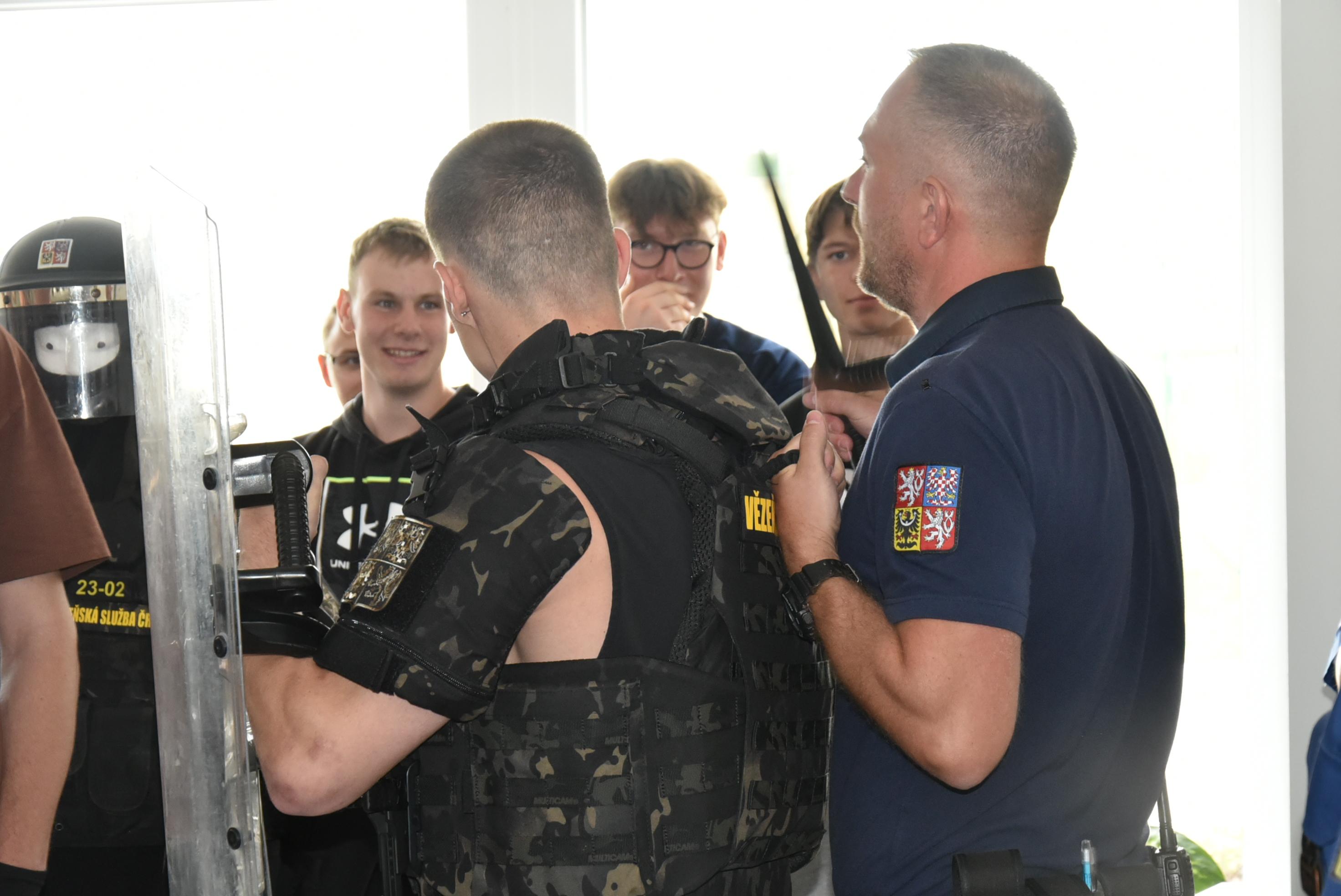 Příslušníci eskortní skupiny představili donucovací prostředky, výstroj a výzbroj. Jejich ukázka byla doplněna poutavým výkladem a možností vyzkoušet, si pod jejich dohledem, například balistický komplet.