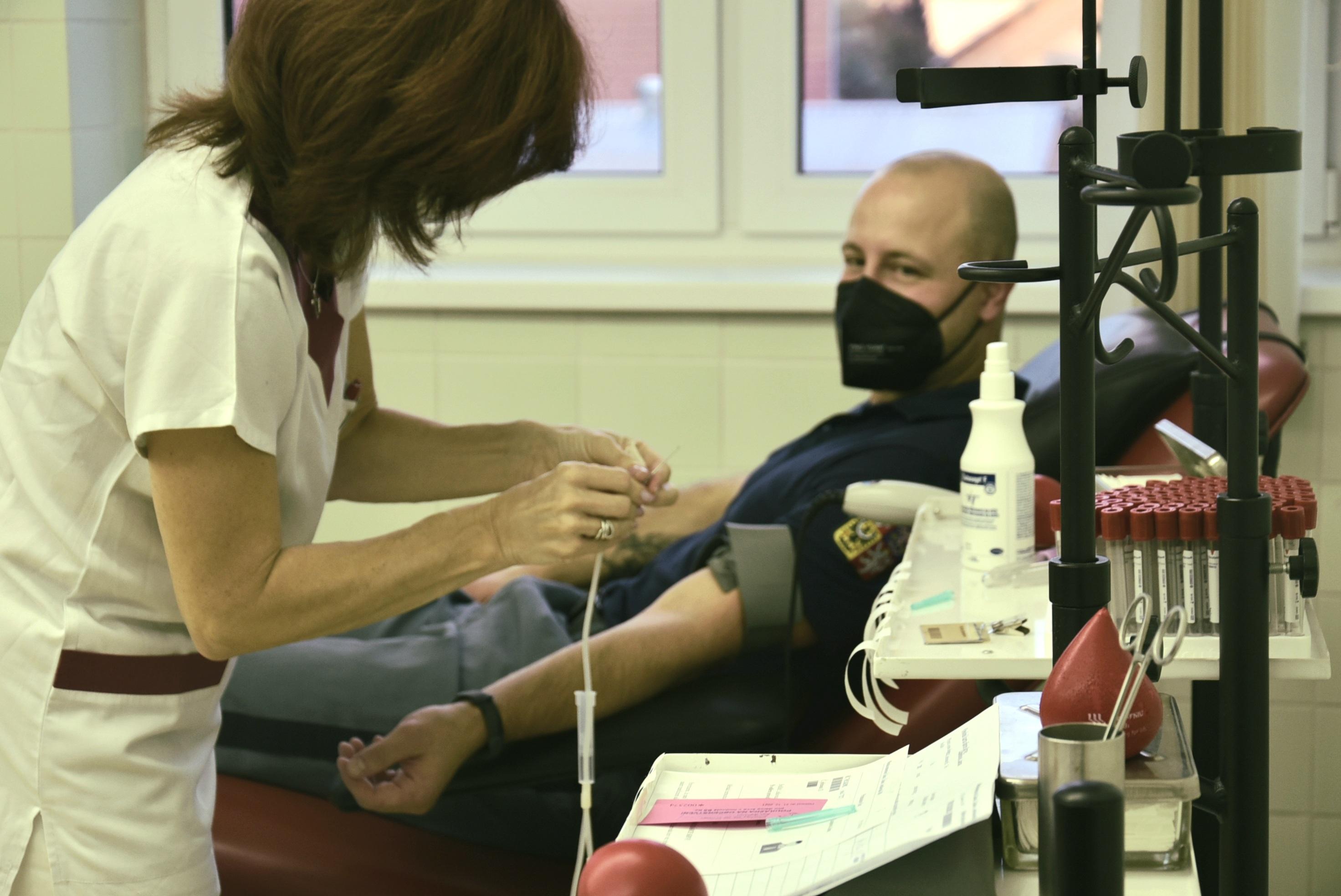 SVĚTLÁ NAD SÁZAVOU 9. listopadu (VS ČR) – Sedmnáct zaměstnanců Věznice Světlá nad Sázavou dnes přijelo darovat krev na hematologicko-transfuzní oddělení Městské nemocnice Čáslav. Věznice tím podpořila druhý ročník projektu vězeňské služby Hromadné darování krve.