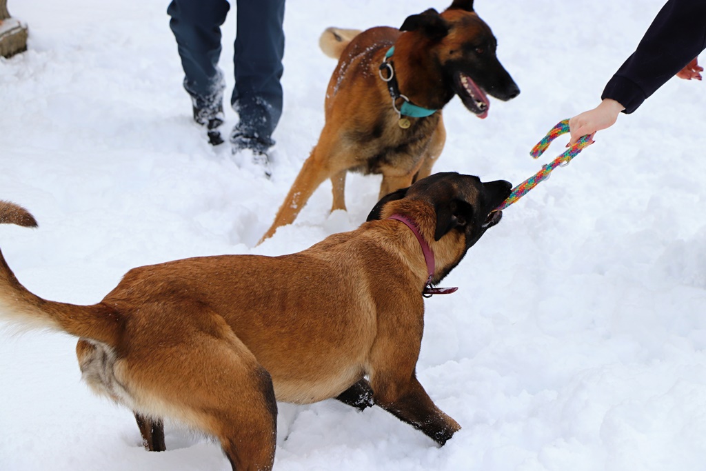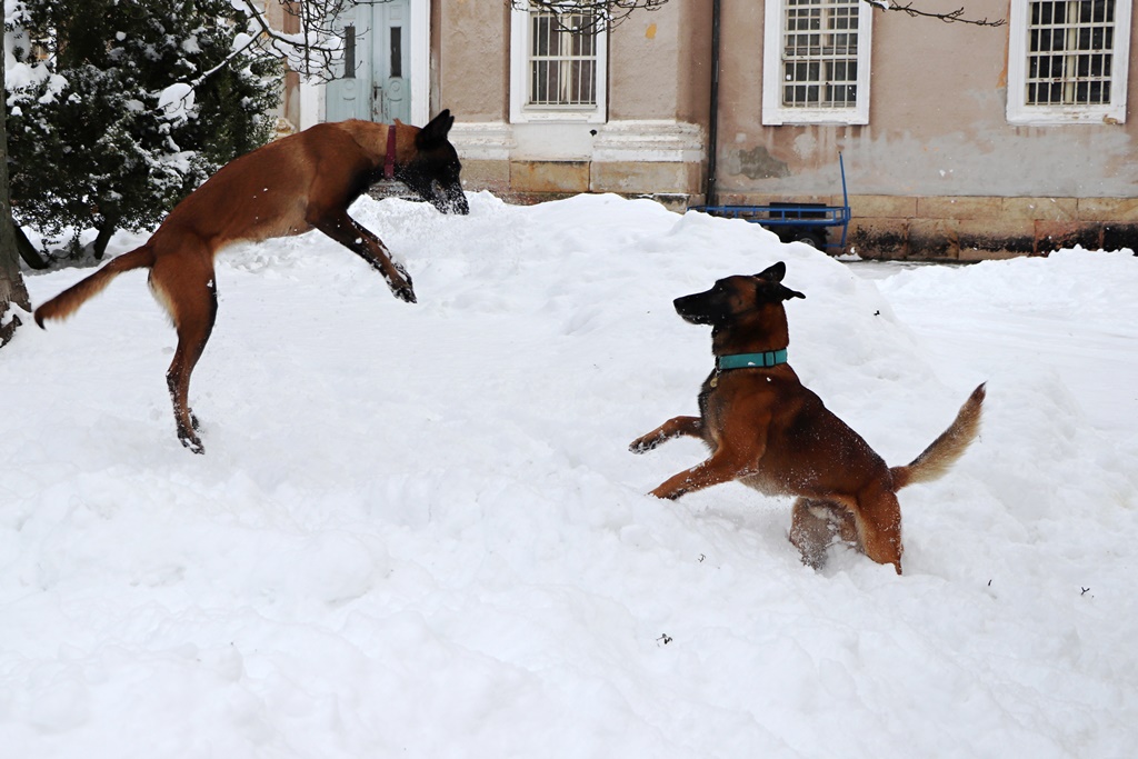 Artuš, dvouletý všestranný belgický ovčák malinois, který se v září 2019 začal seznamovat s vězeňským prostředím, trénuje se svým psovodem i ve sněhu. Stále ještě probíhá jeho výcvik a příprava na zkoušky. Ve sněhové peřině se předvedli i specialisti, pětiletý Buster a téměř tříletá Qualitka, které její psovodkyně říká Ája.