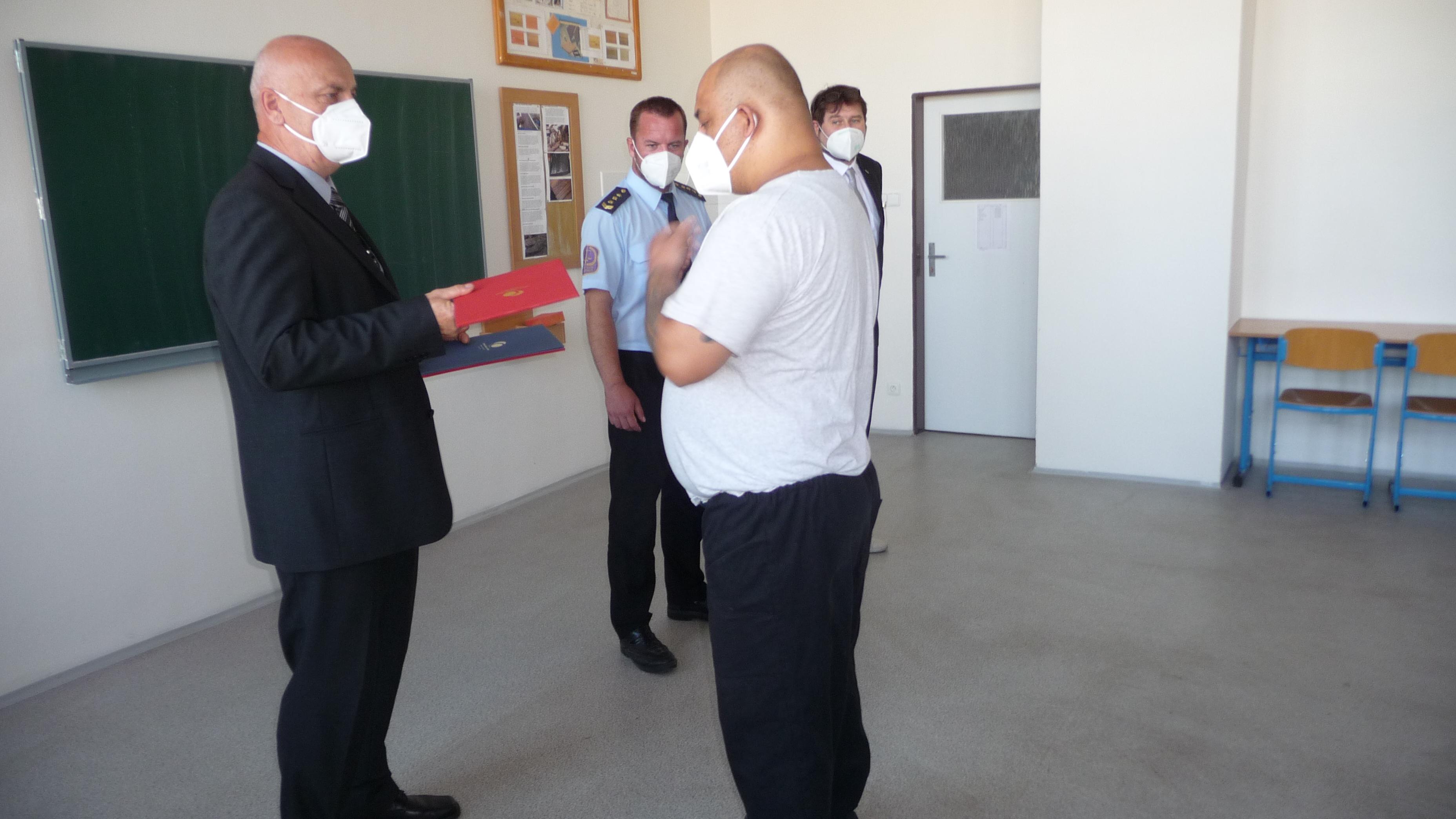 Třídní učitelé předali odsouzeným deset červených diplomů, které značí prospěl s vyznamenáním a čtyři modré diplomy - prospěl. Odsouzení, tak ukončili vzdělání v učebních oborech Dřevařská výroba a Práce ve stravování.