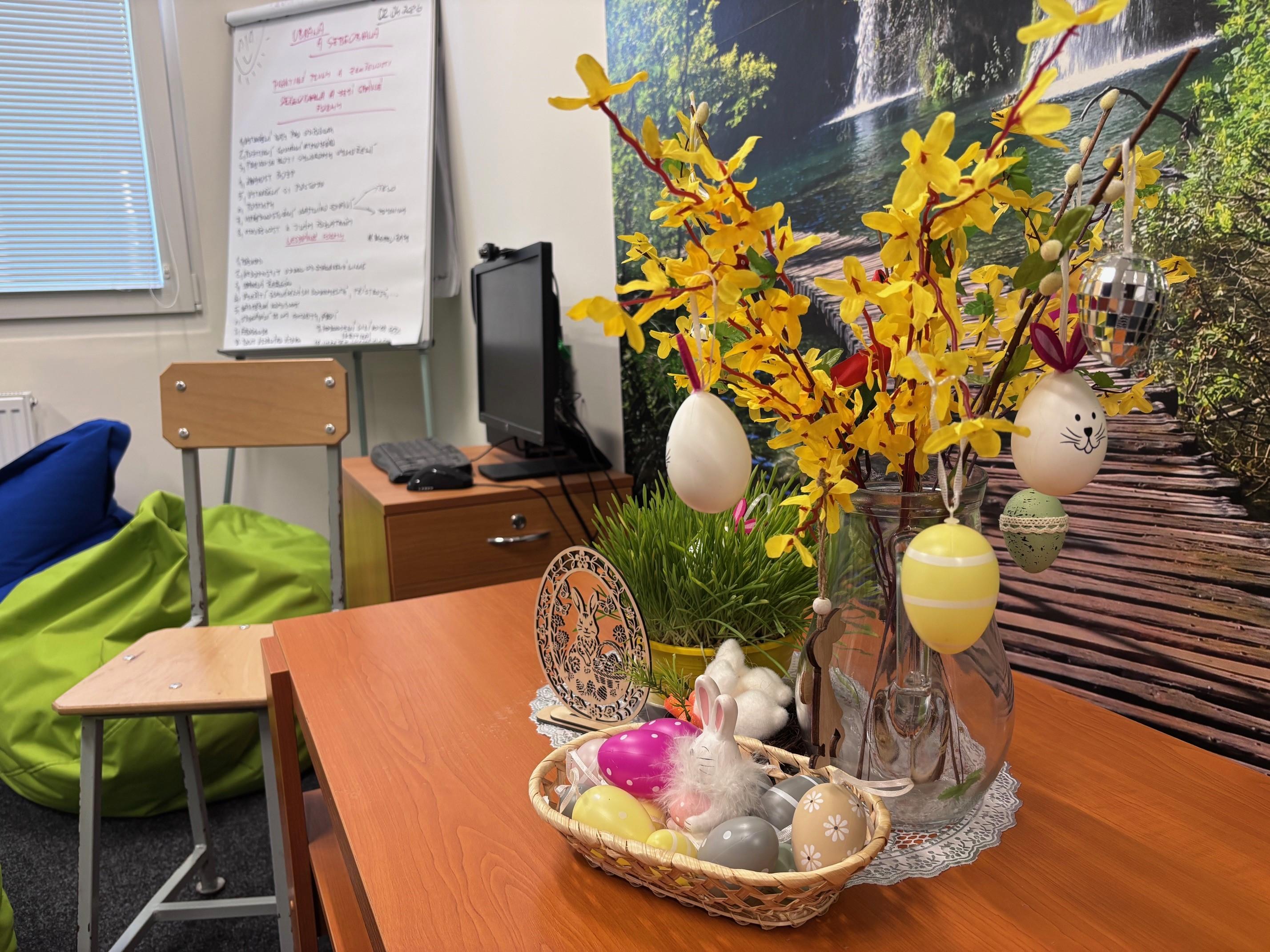 VŠEHRDY 2. dubna (VS ČR) – Strohé chodby oddílu mladistvých ve Věznici Všehrdy ozdobily velikonoční dekorace. Jarní svátky připomíná výzdoba i na terapeutické místnosti.