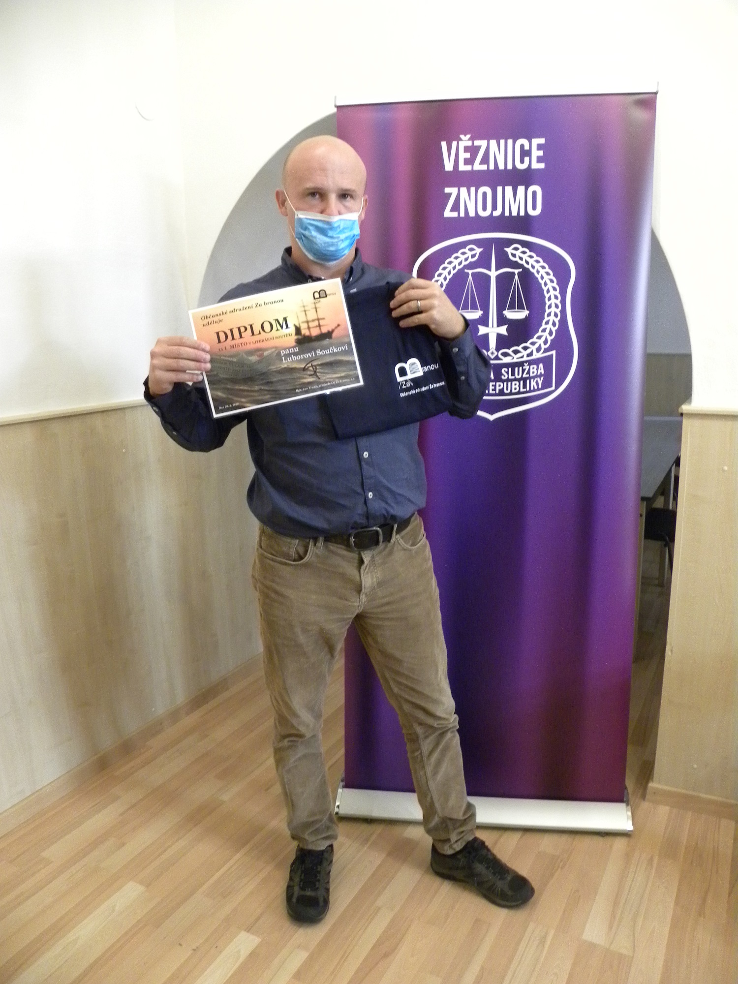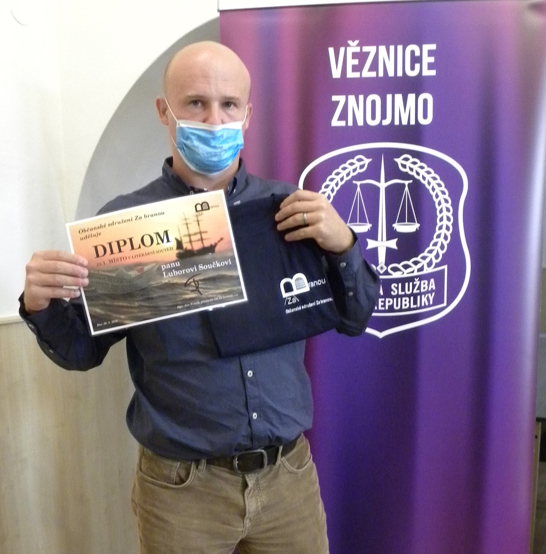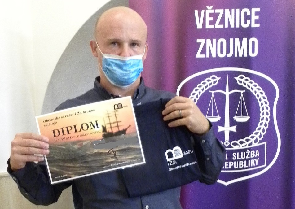 V srpnu letošního roku byly vyhlášeny výsledky 1. ročníku literární soutěže pro odsouzené, kterou vyhlásilo občanské sdružení „Za branou“ na téma „Moje rodina“. Literární příspěvky byly zasílány během měsíců červen a červenec 2020 a zaslalo je 60 odsouzených žen a mužů ze 14-ti věznic České republiky. Odborná komise, ve složení Mgr. Anna Šabatová, PhD – bývalá ochránkyně veřejných práv, Ing. Bc. Pavel Kočnar - bývalý hlavní kaplan vězeňské služby, PhDr. Soňa Haluzová - psycholožka, a Mgr. Bc. Pavel Vagner – bývalý ředitel Věznice Všehrdy, vybrala 20 nejkvalitnějších příspěvků, které byly zveřejněny na webu a facebooku občanského sdružení. Na konečném pořadí se tedy podílela jak odborná komise, tak zájemci z řad veřejnosti, kteří příspěvky přečetli na internetu. Třetí místo patří dsouzenému muži z Věznice Oráčov, na druhém místě je odsouzená žena z Věznice Světlá nad Sázavou a místo první patří odsouzenému muži z Věznice Znojmo. Ve své povídce „Trojí trest“ popisuje emotivním způsobem osudy svých nejbližších, na které dopadá jeho pobyt za mřížemi. Cenu veřejnosti získal odsouzený muž z Věznice Rapotice za svoji povídku "Zrozen z pekla". Diplom a tričko přijel do znojemské věznice předat v pátek 18. září 2020 zástupce sdružení pan Jan Frank. Občanské sdružení „Za branou“, které je poradnou pro osoby ve výkonu trestu odnětí svobody a jejich rodiny, chce v těchto literárních soutěžích pokračovat i v dalších letech a pan Frank doufá, že bude z řad odsouzených o tuto soutěž zájem a zašlou opět mnoho kvalitních a zajímavých literárních děl.