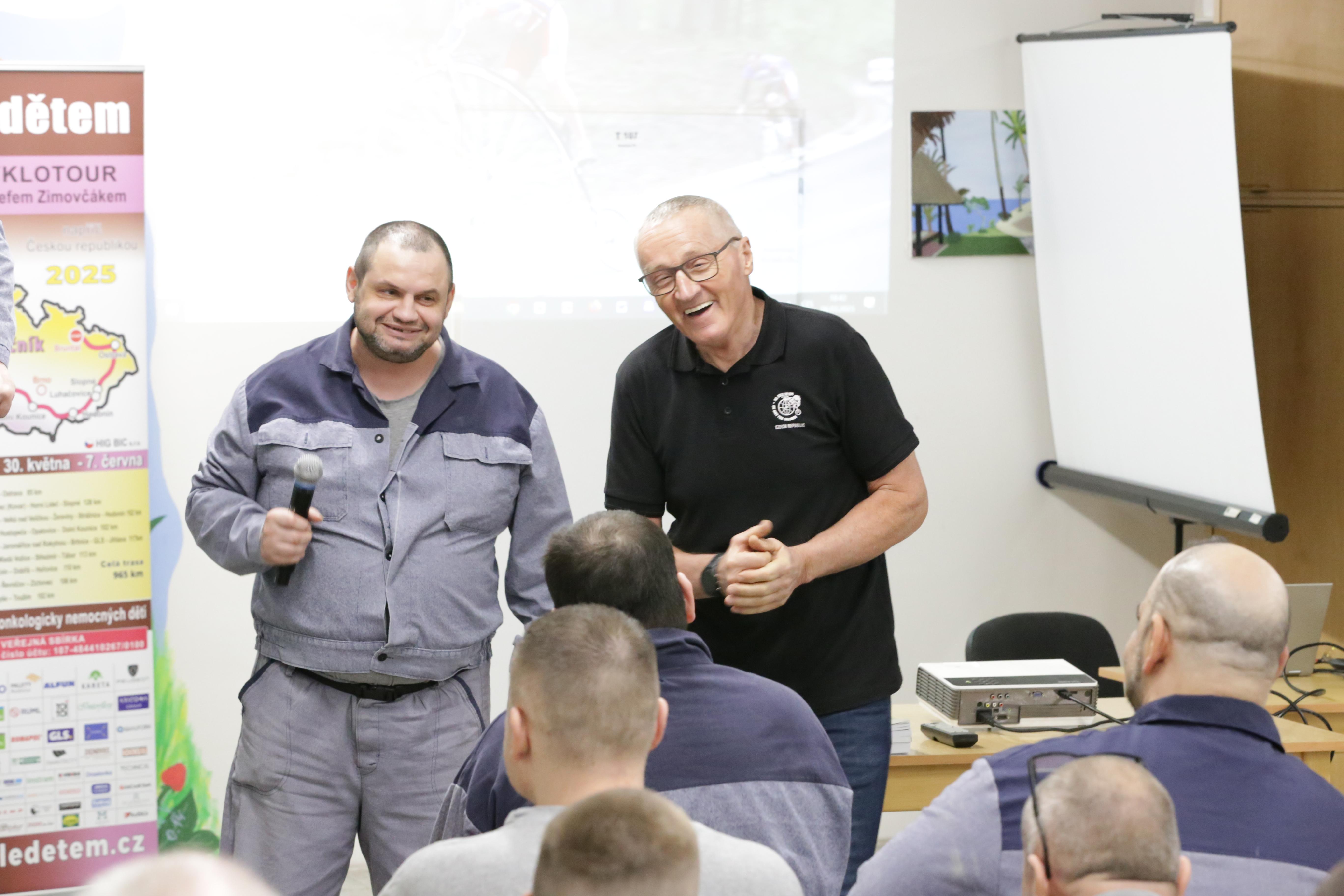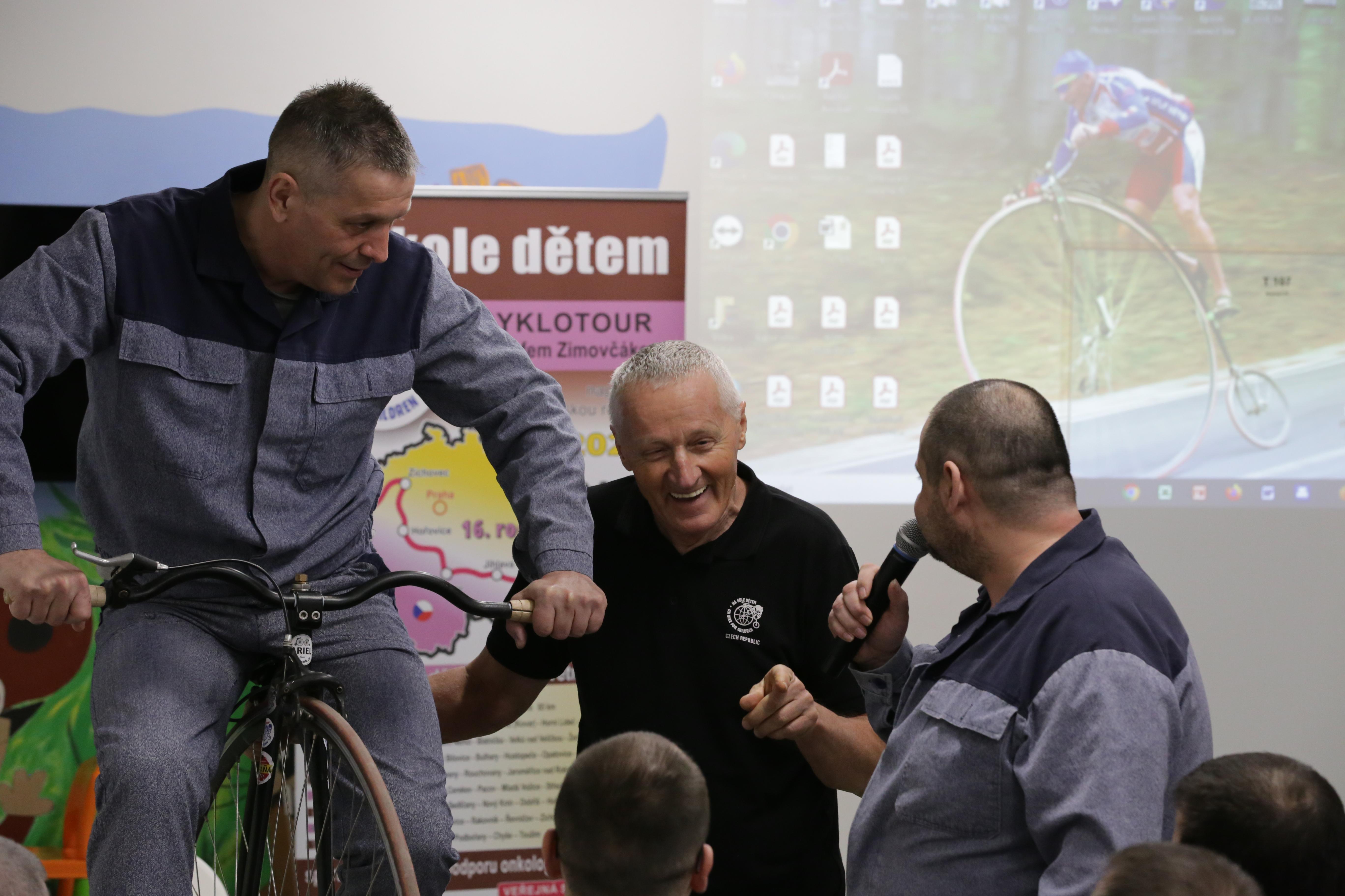 Po přivítání ředitelkou věznice přiblížil své sportovní výkony i útrapy s nimi spojené, a to nejen poutavým vyprávěním, proloženým laskavým humorem, ale také videoprojekcí z jeho cest po světě. Zpestřením byla i praktická ukázka jízdy na vysokém kole.