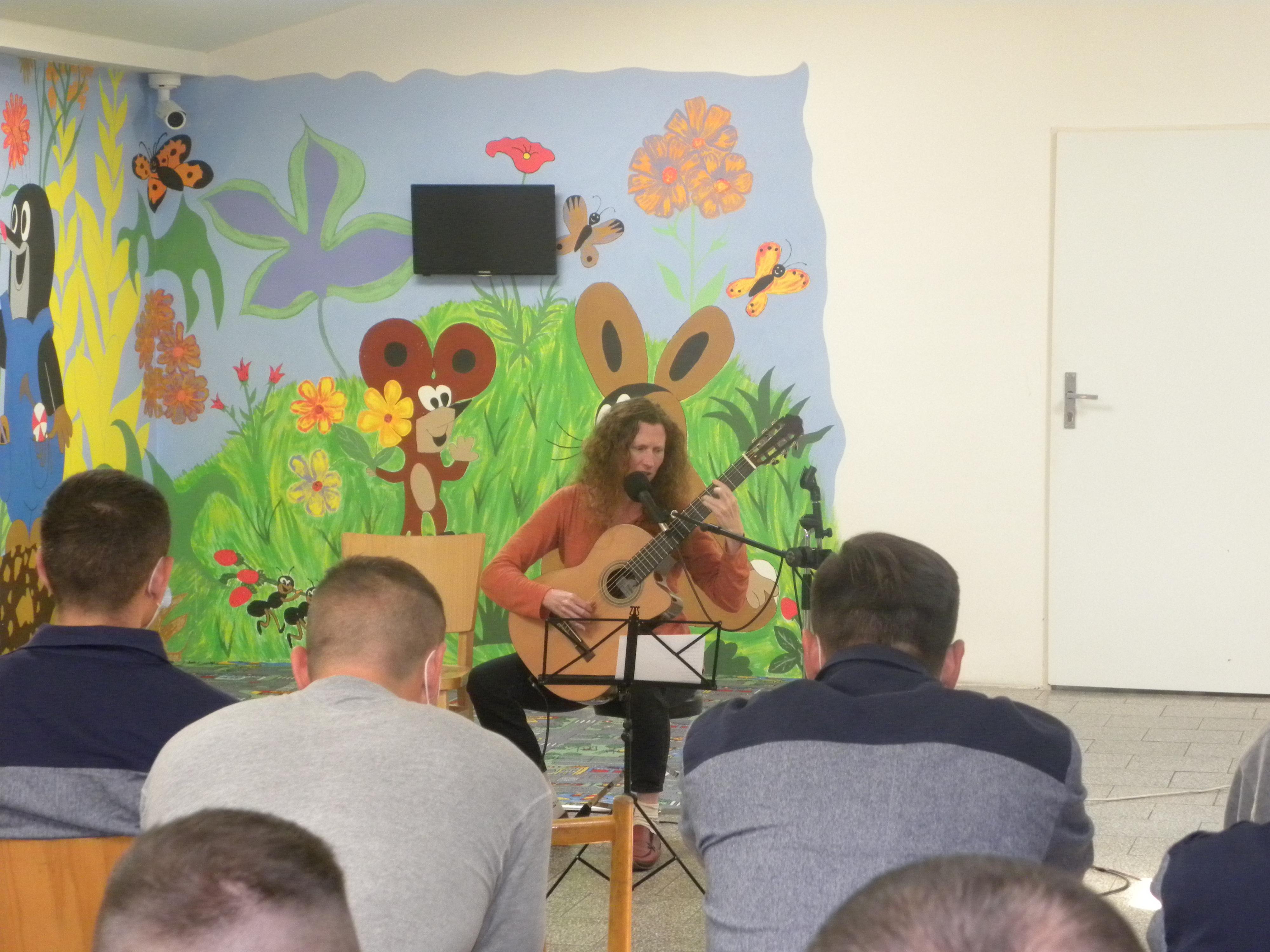 Znojmo 30. září (VS CR). Po rockovém koncertu skupiny „Vězeňskej rock“ a dvou operních koncertech tenora Martina Vrby tentokrát odsouzeným své jemné umění předvedla zpěvačka, autorka textů a kytarová interpretka - Eva Henychová.